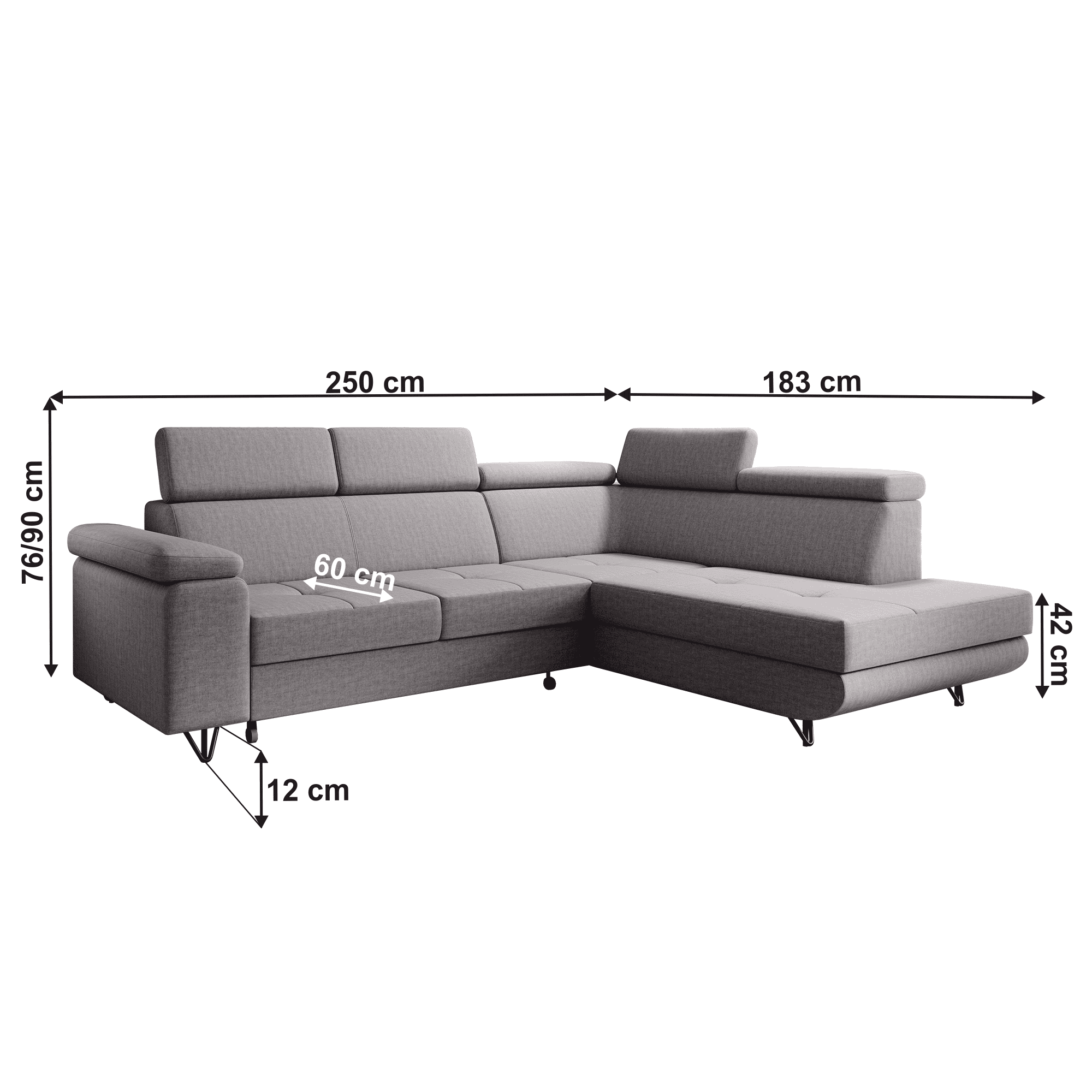 Dimensiuni (LxAxA): 250x183x76/90 cm