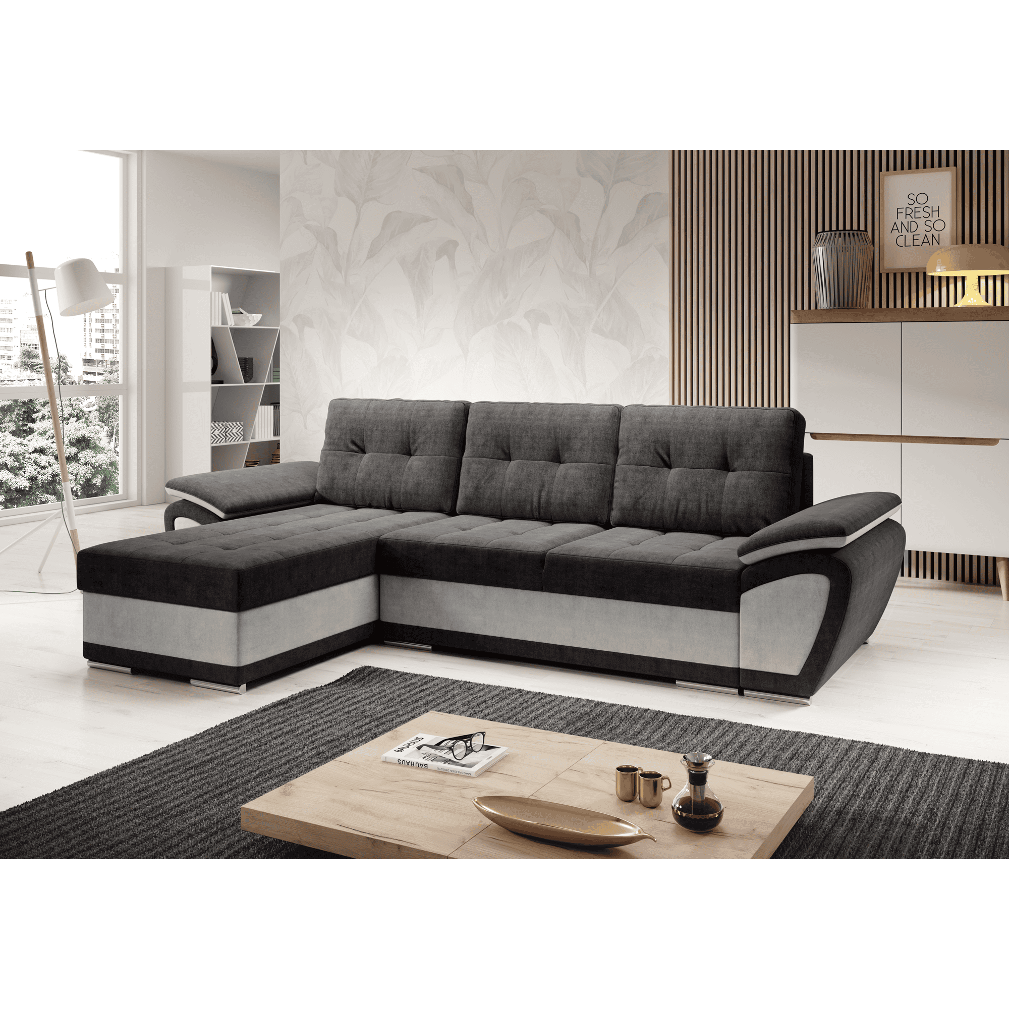Canapea extensibilă, gri deschis/gri închis, stânga, ENIF ROH