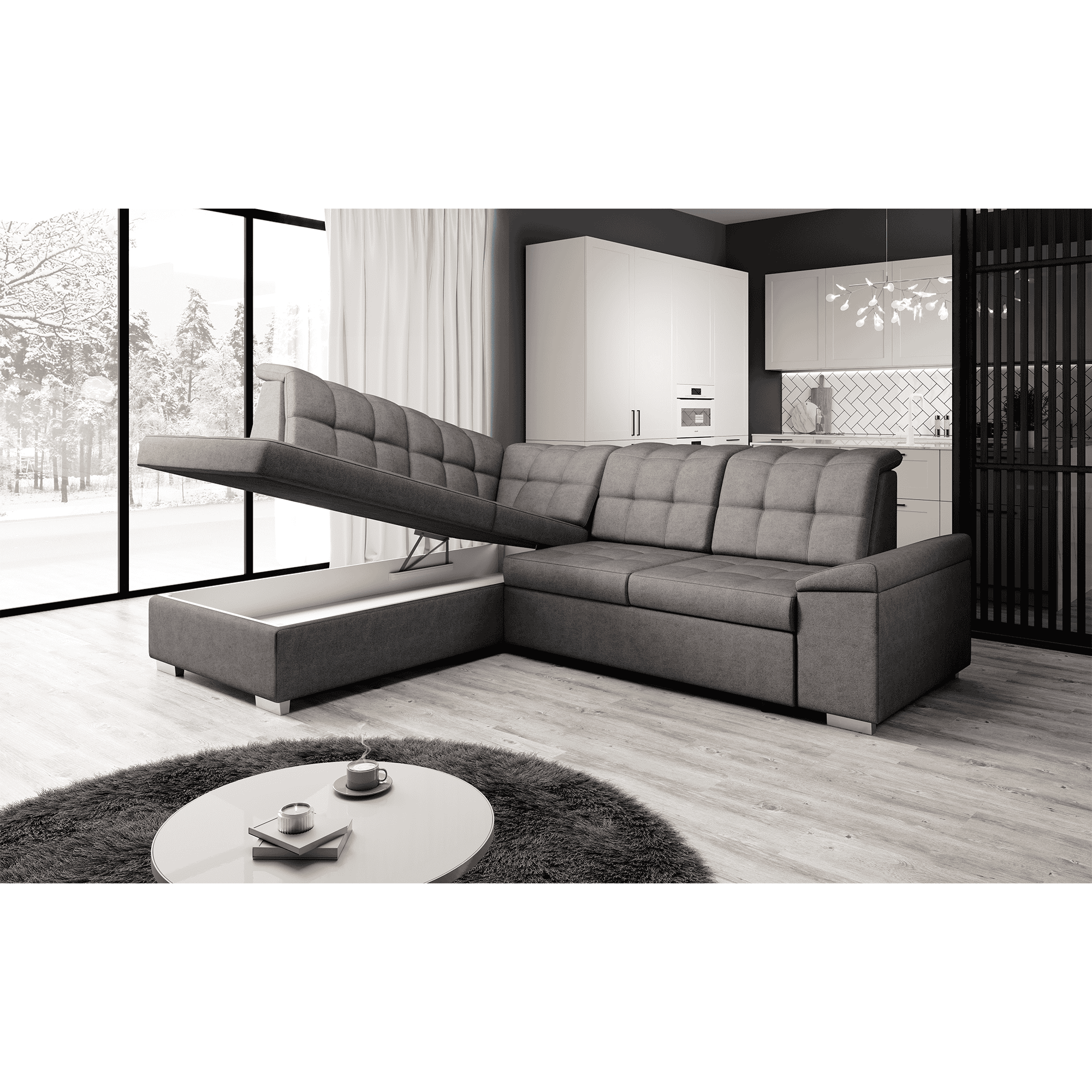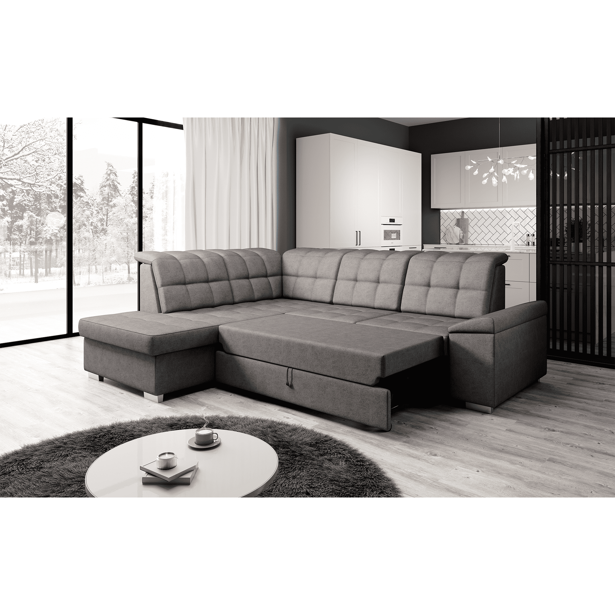 Canapea extensibilă, gri-maroniu, stânga, OREO ROH
