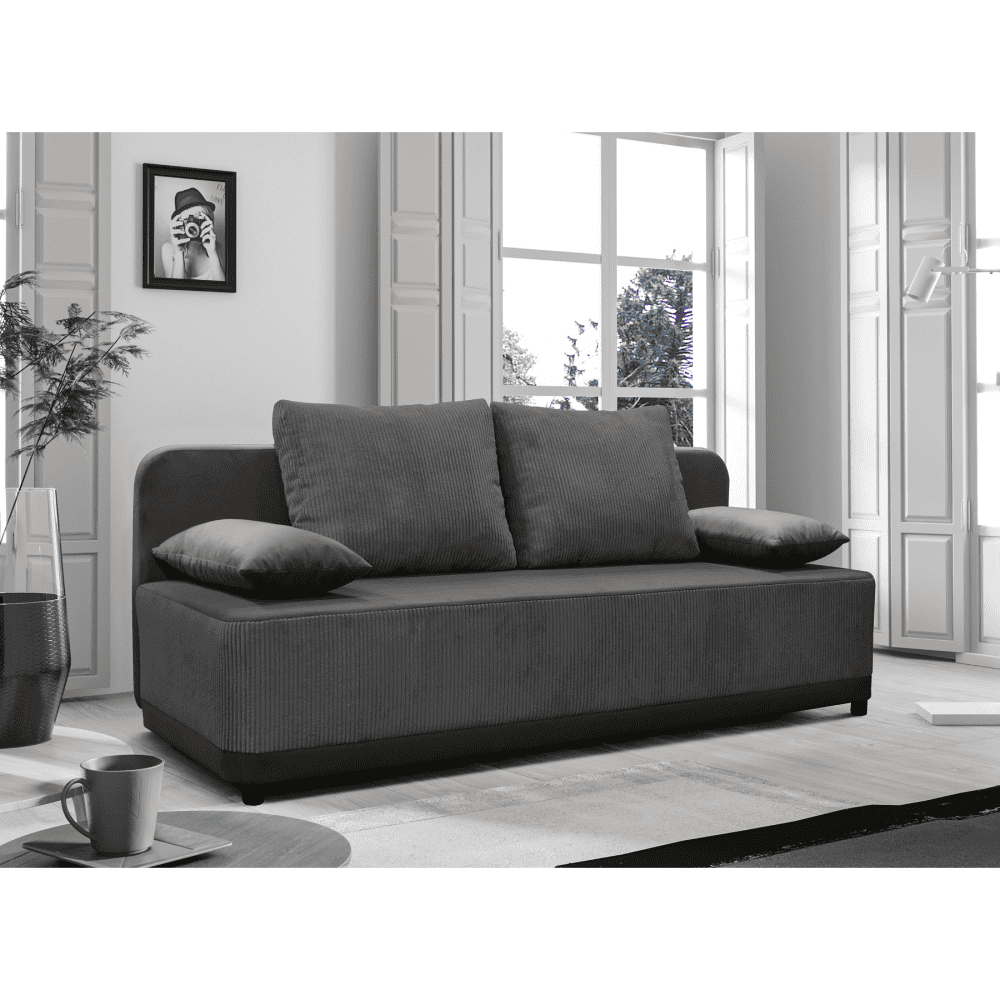 Material: ţesătură Manila 16 / Poso 60 Rezistenţa ţesăturii Manila conform testului Martindale: 58.000 de cicluri de frecare Rezistenţa ţesăturii Poso conform testului Martindale: 90.000 de cicluri de frecare Culoare: gri Dimensiuni (LxAxÎ): 197x83x77/90 cm Suprafaţa pentru dormit (LxL): 141×196 cm Înălţime scaun: 44 cm Adâncime scaun: 48/74 cm Material picioare: plastic Culoare picioare: neagră Înălţimea compartimentului inferior de la podea: 5 cm Umplutură: spumă poliuretanică Tapiţată integral Spaţiu de depozitare Perne incluse în set Dimensiunile pernei mari (LxL): 65×50 cm Dimensiunile pernei mici (LxL): 33×60 cm Capacitatea de susţinere per persoană: 90 kg Practică Modernă Livrată dezasamblată
