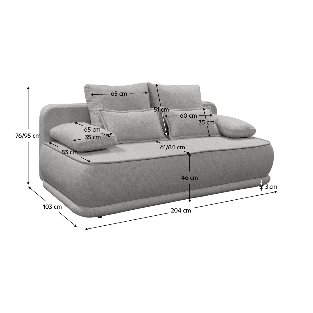 Dimensiuni (lxAxh): 204x103x76/95 cm