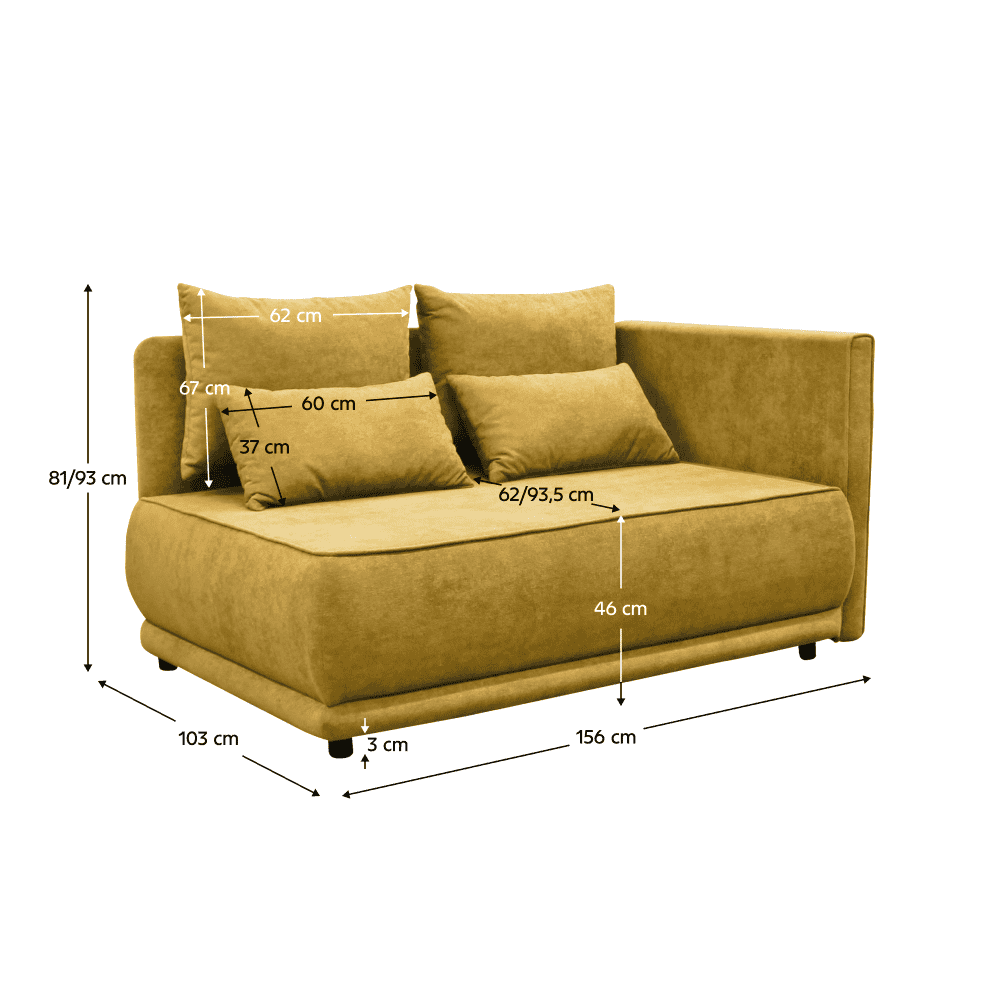 Material: ţesătură Gerra 35 Rezistenţa ţesăturii la frecare conform testului Martindale: 40 000 de cicluri de frecare Culoare: muştar Dimensiuni (lxAxh): 156x103x81/93 cm
