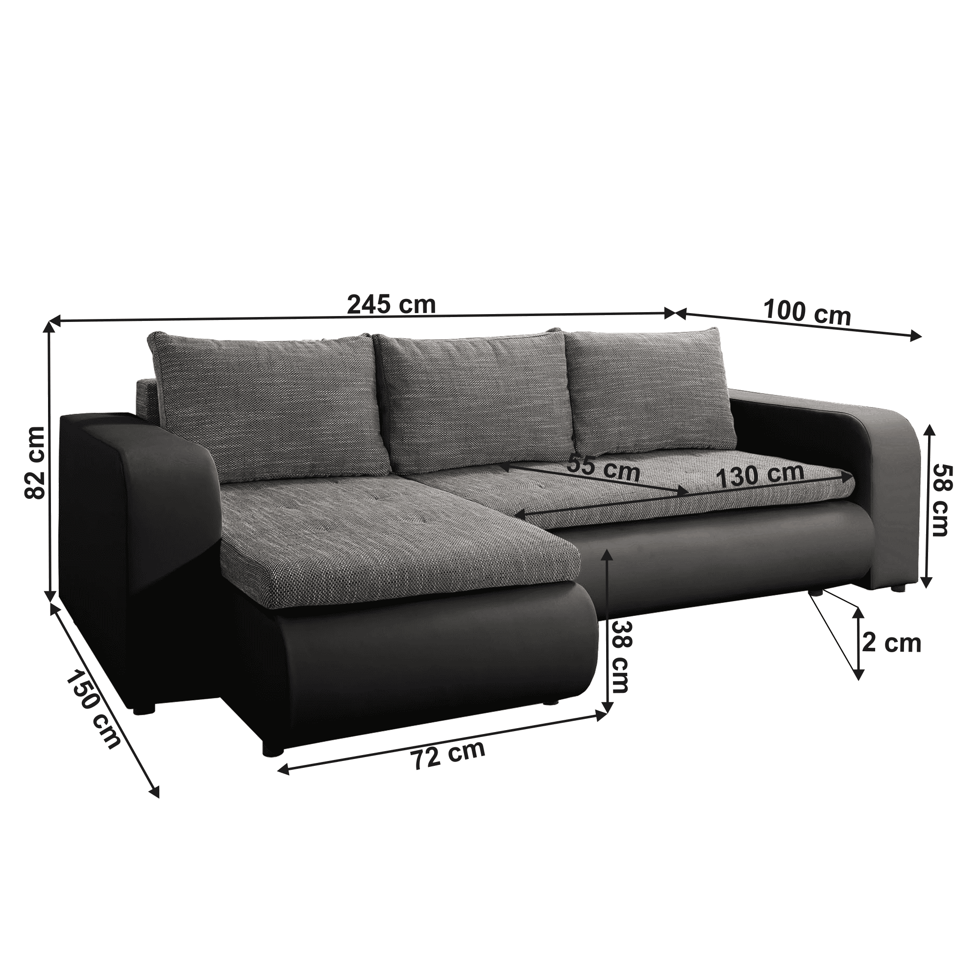 Canapea extensibilă, negru/gri, stânga, BURAN ROH