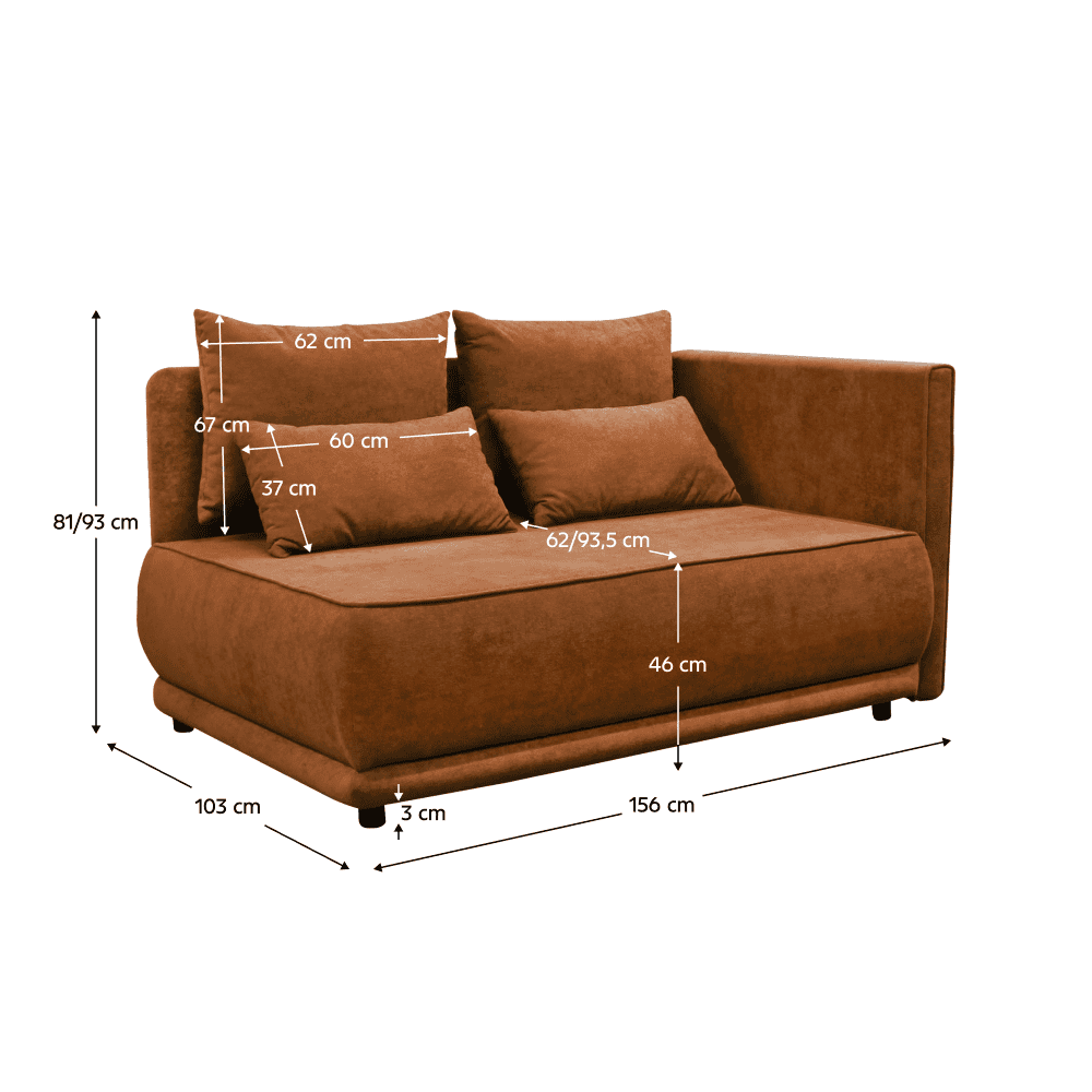 Canapea extensibilă, teracotă, pe dreapta, LIAMI