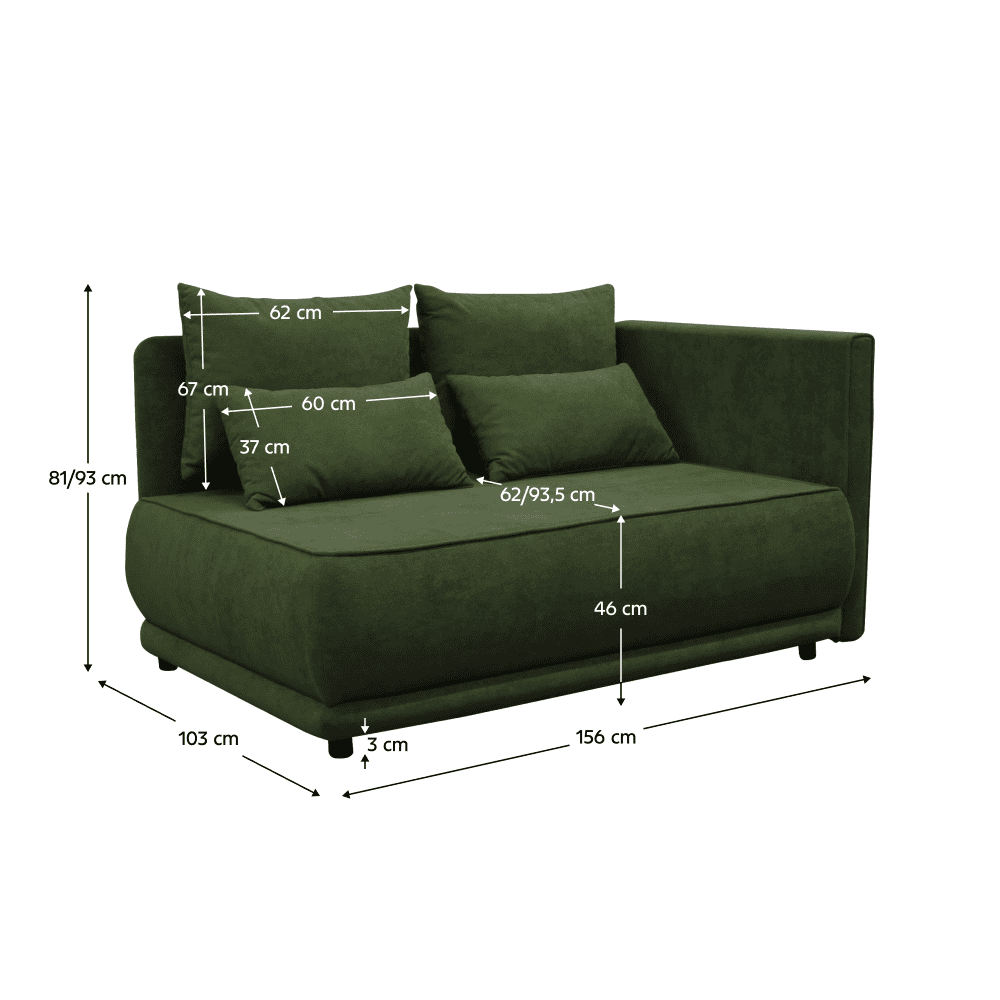 Material: ţesătură Gerra 50 Rezistenţa ţesăturii la frecare conform testului Martindale: 40.000 de cicluri de frecare Culoare: verde Dimensiuni (lxAxh): 156x103x81/93 cm