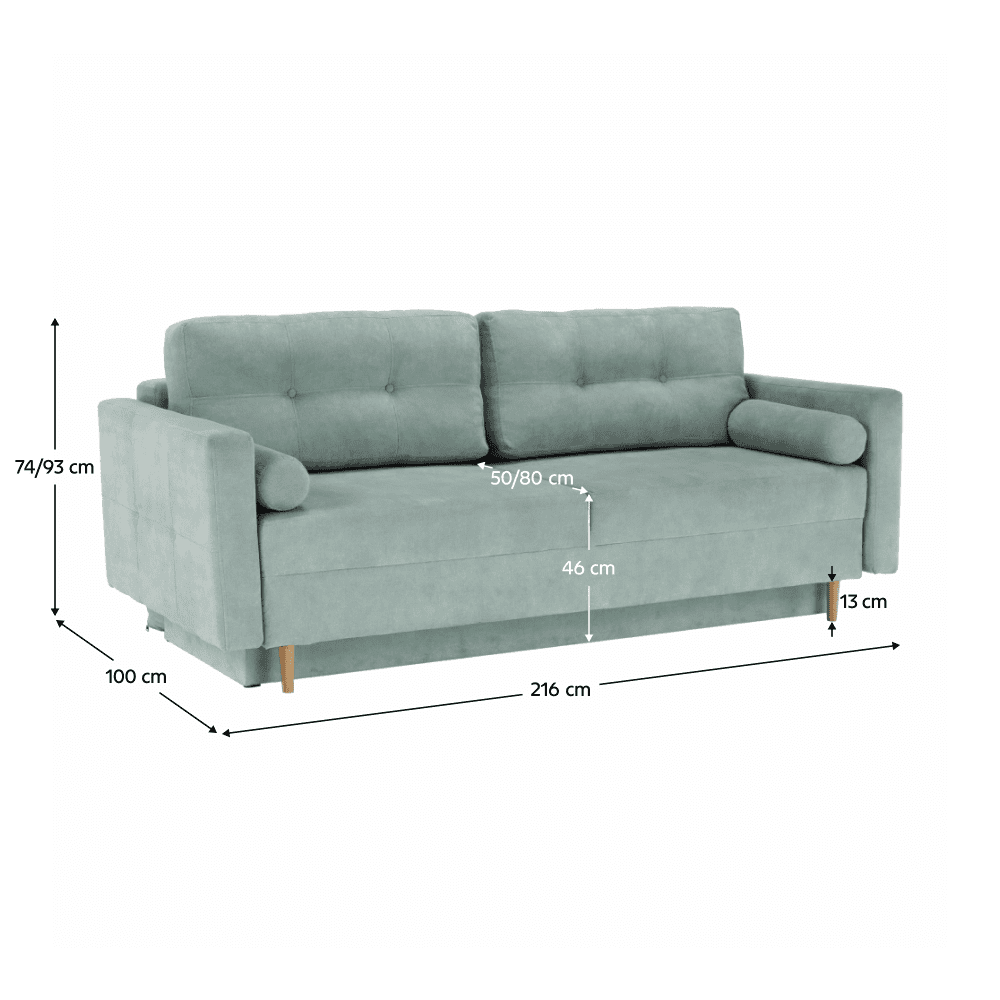 Canapea extensibilă, verde mentă textil Queens, AURELIA
