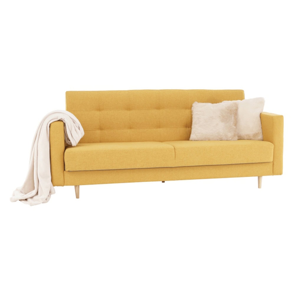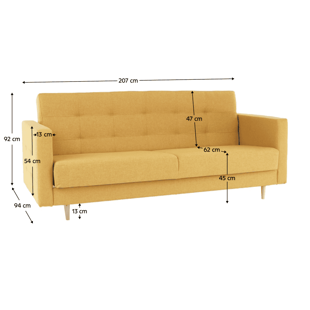 Canapea tapiţat 3 locuri, material textil muştar, AMEDIA