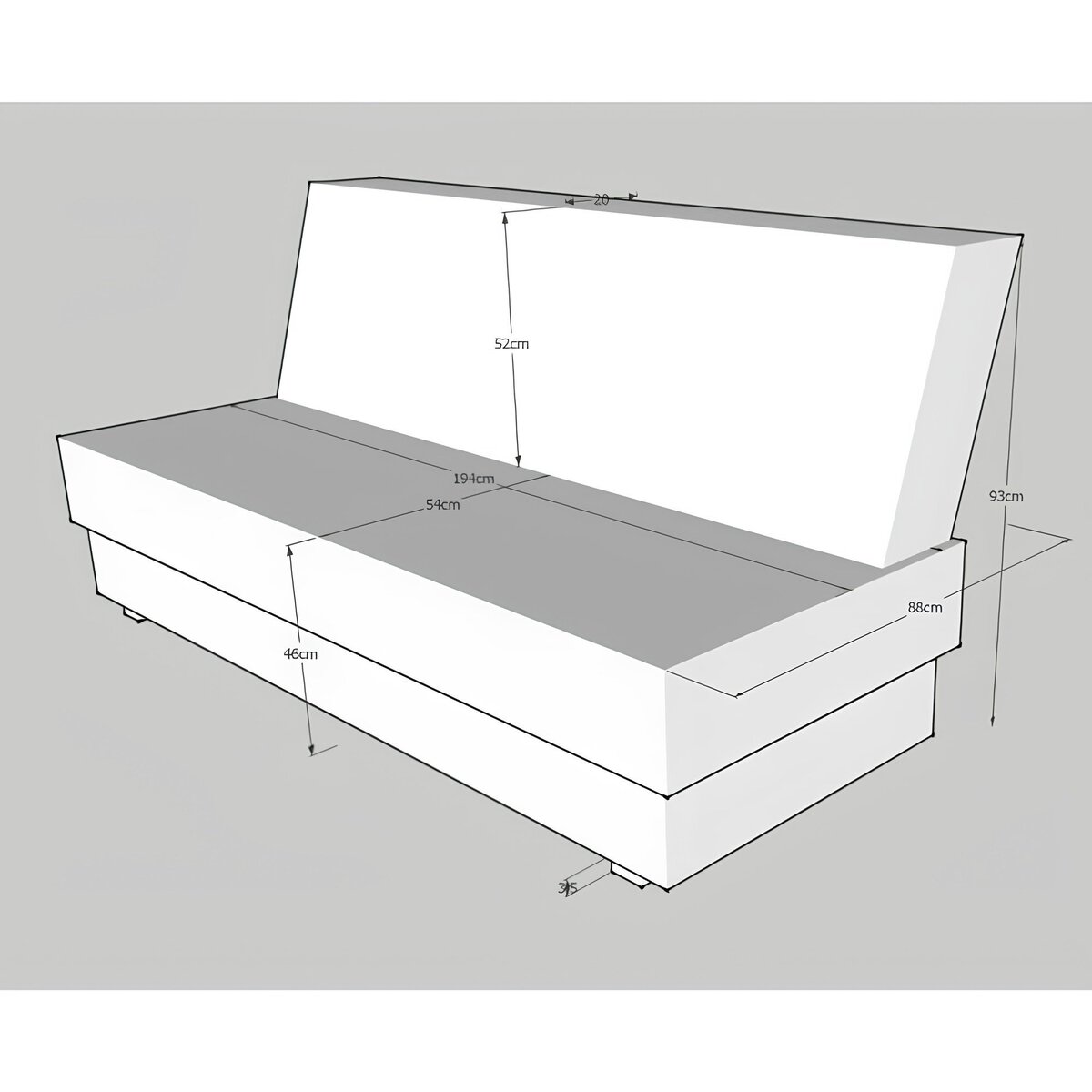 Dimensiuni (LxAxH): 195x90x90 cm, Suprafaţă utilă de dormit: 116×195 cm