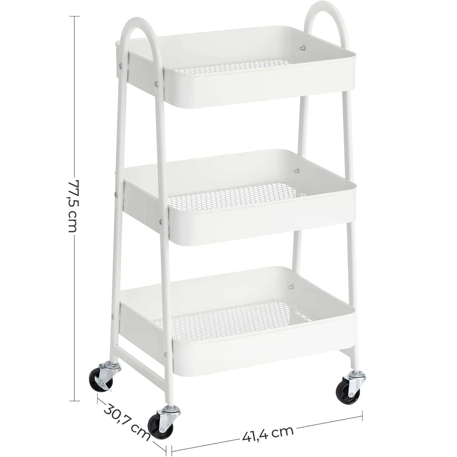 Carucior depozitare 3 niveluri cu roti si frane, structura metalica, 41x31x78 cm, alb Mob360