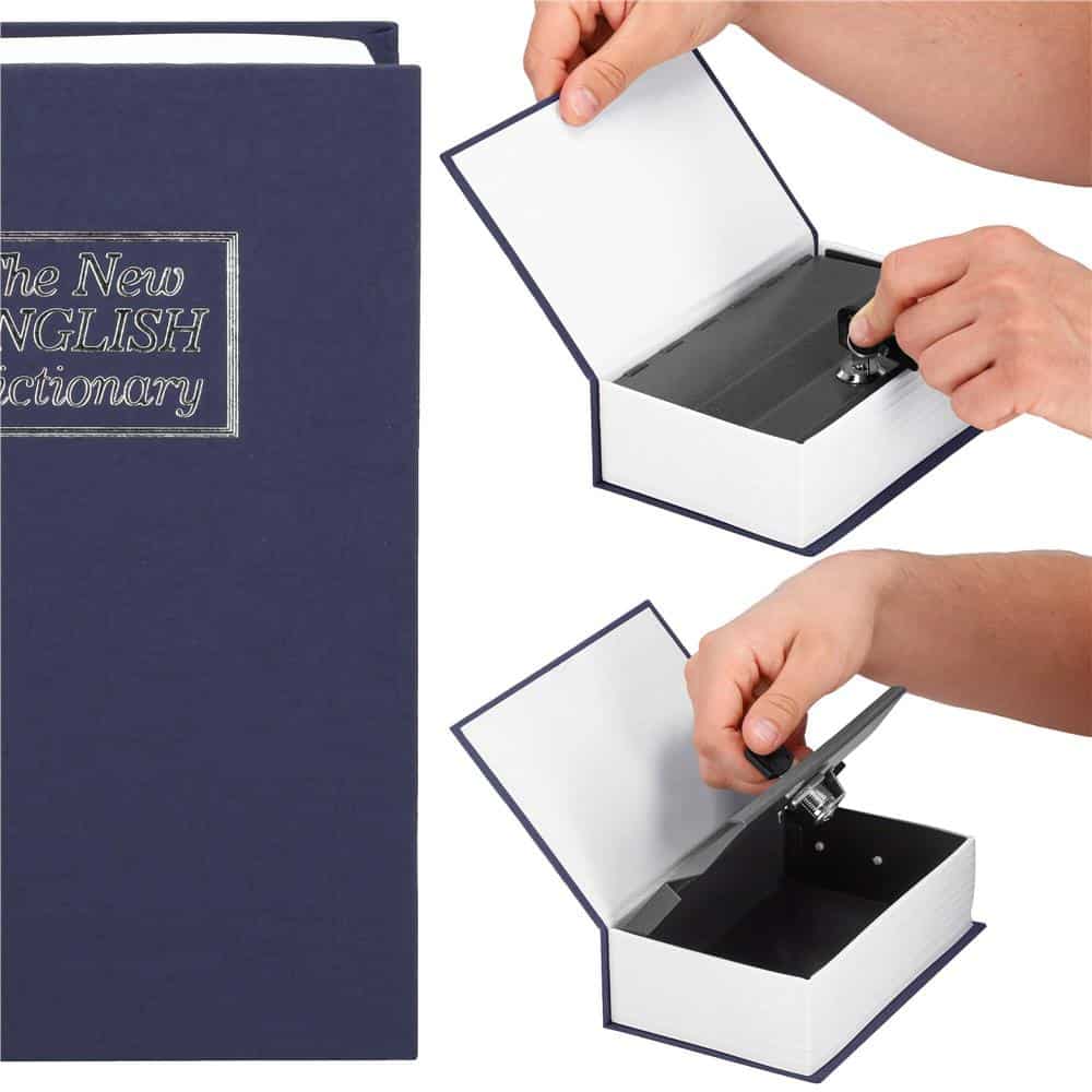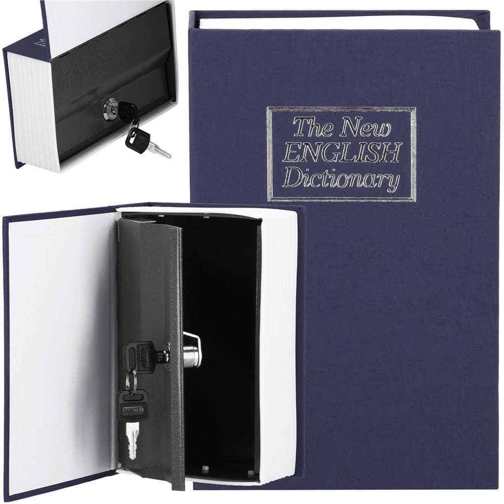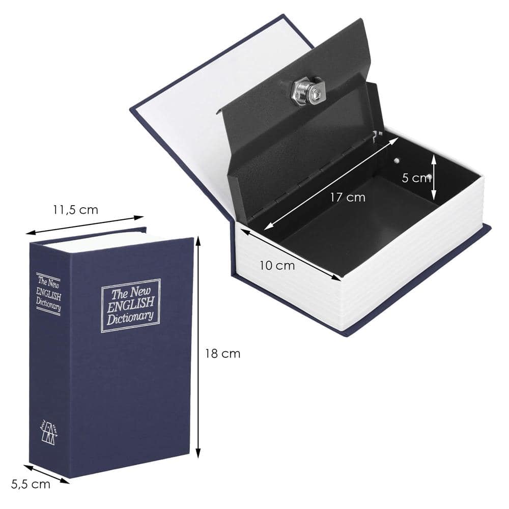Caseta de valori, cutie metalica cu cheie, portabila, tip carte, Dictionar, albastru, 18×11.5×5.5 cm Mob360