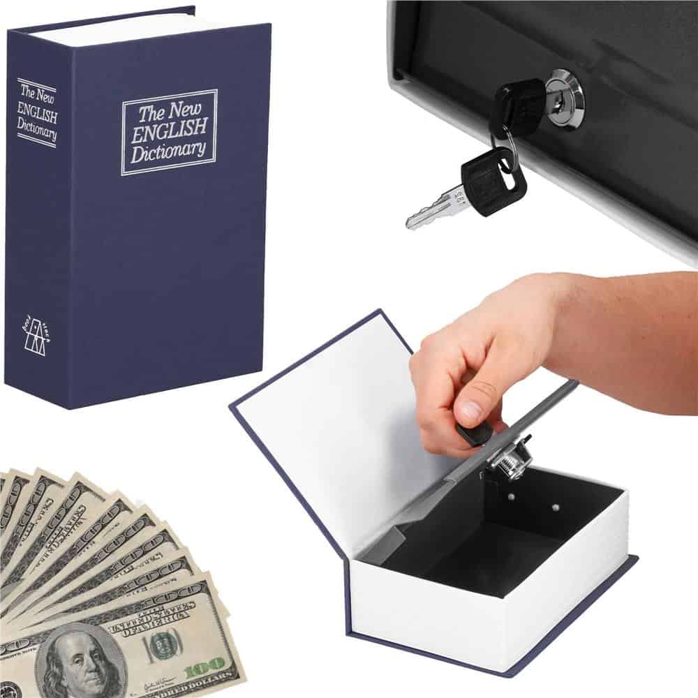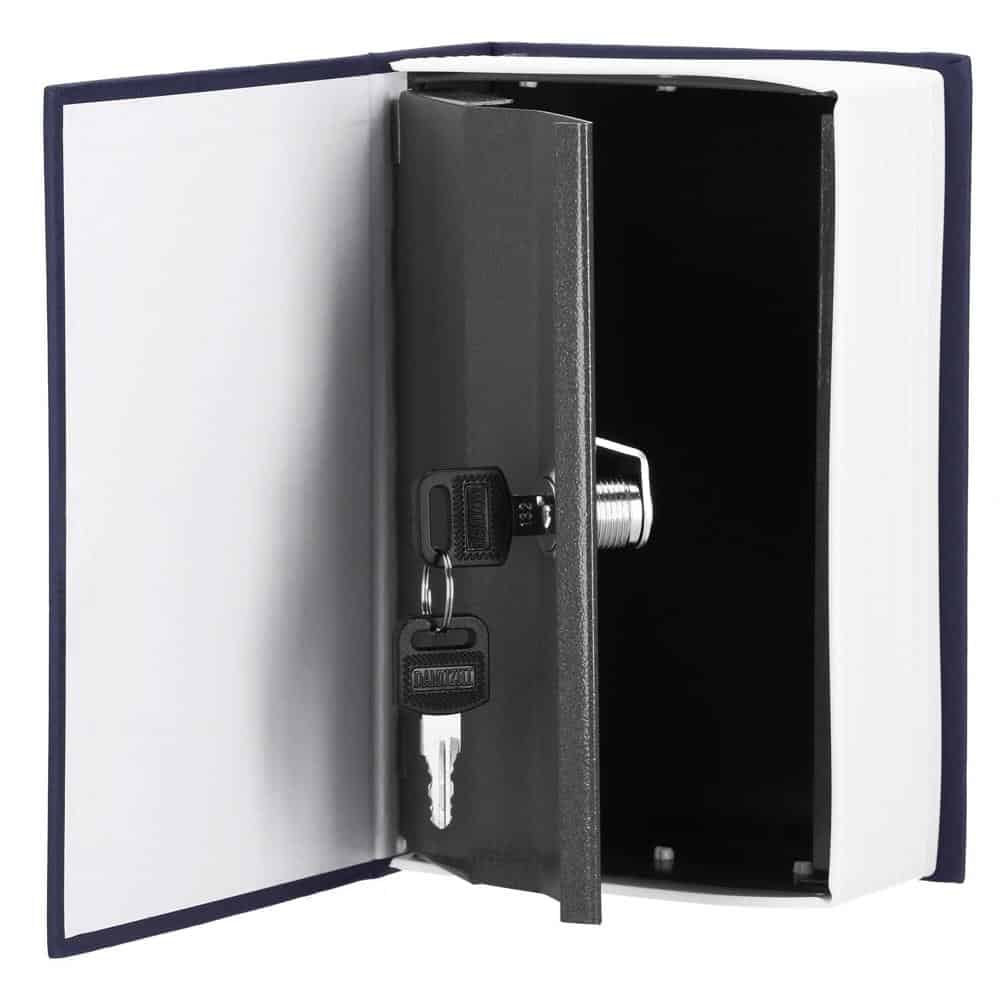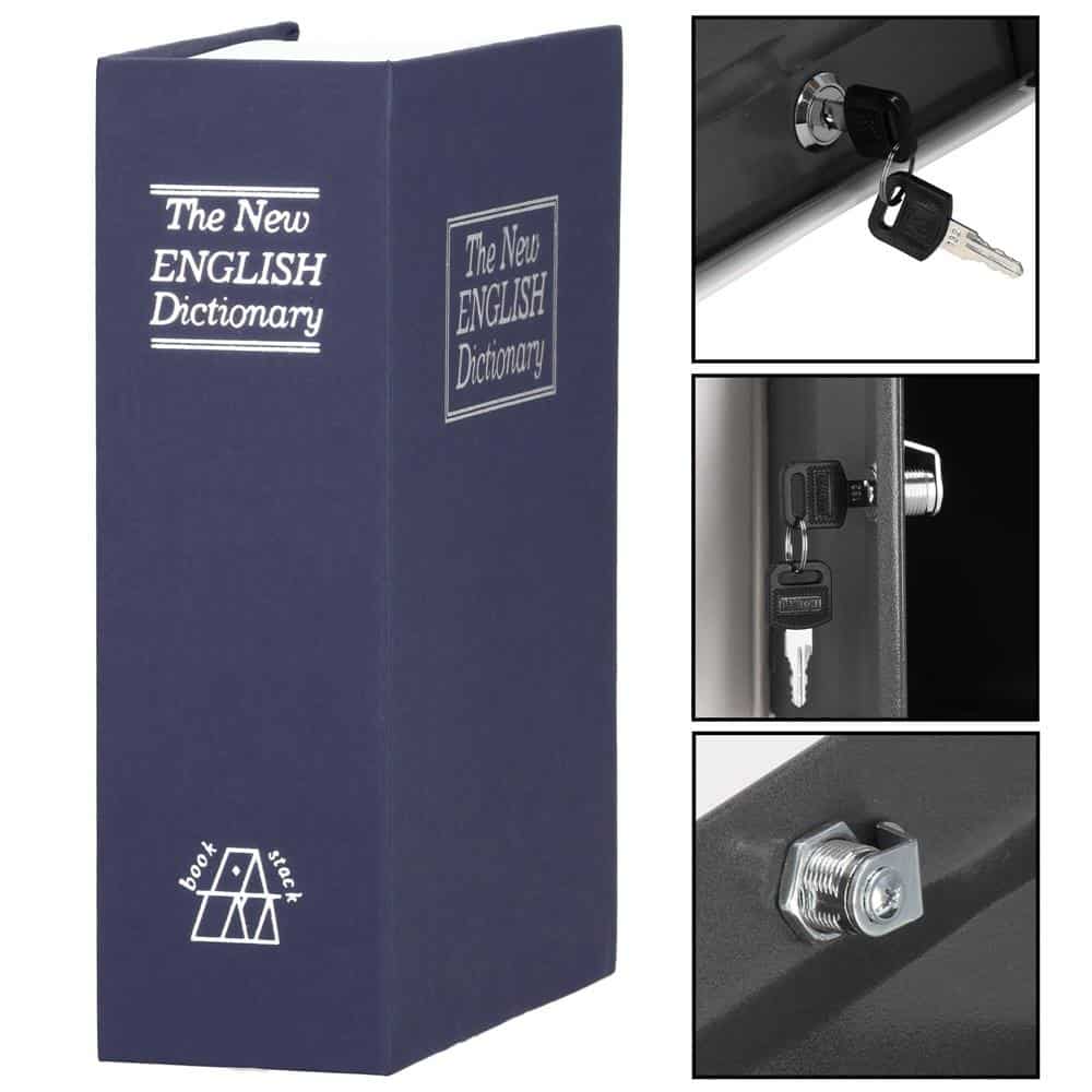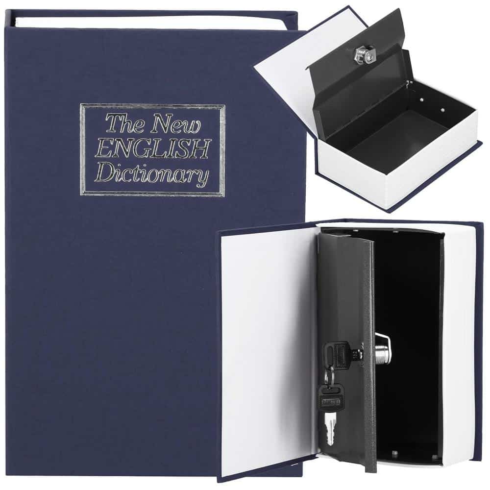 Caseta de valori, cutie metalica cu cheie, portabila, tip carte, Dictionar, albastru, 18×11.5×5.5 cm Mob360