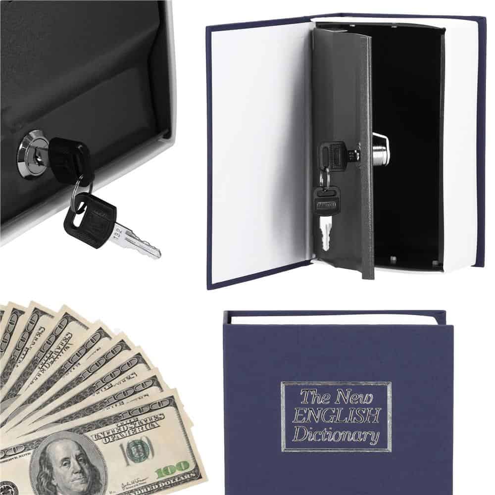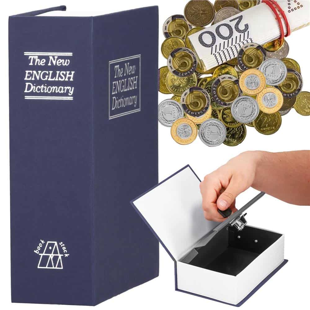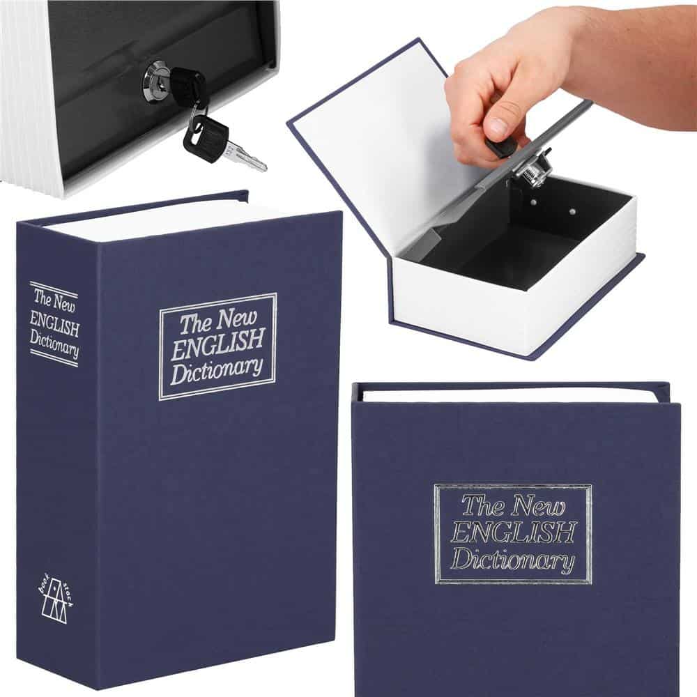 Caseta de valori, cutie metalica cu cheie, portabila, tip carte, Dictionar, albastru, 26×20.5×6.5 cm Mob360