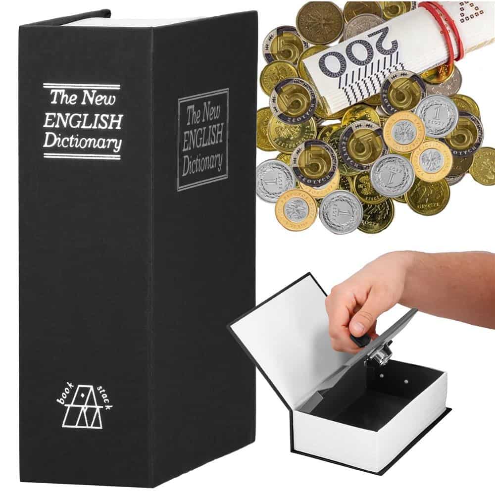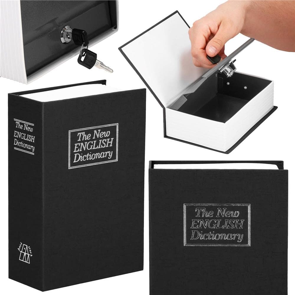 Caseta de valori, cutie metalica cu cheie, portabila, tip carte, Dictionar, negru, 24×15.5×5.5 cm Mob360 – produs disponibil în magazinul Mob360.
