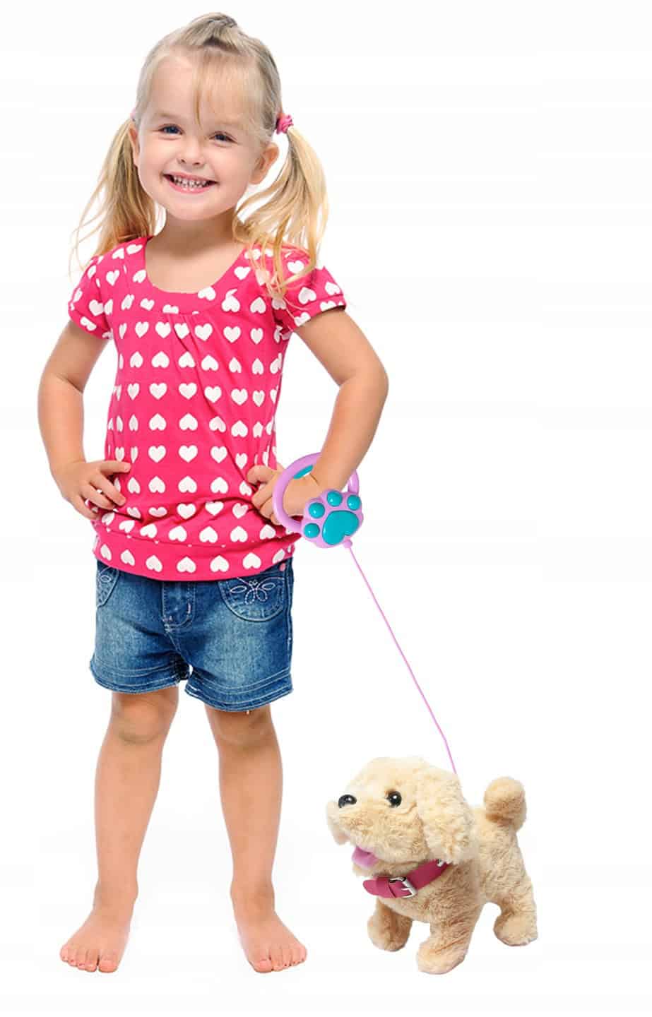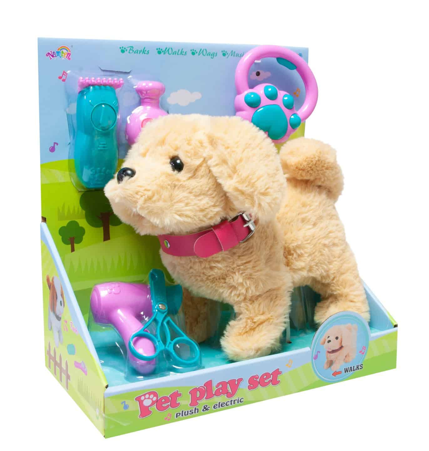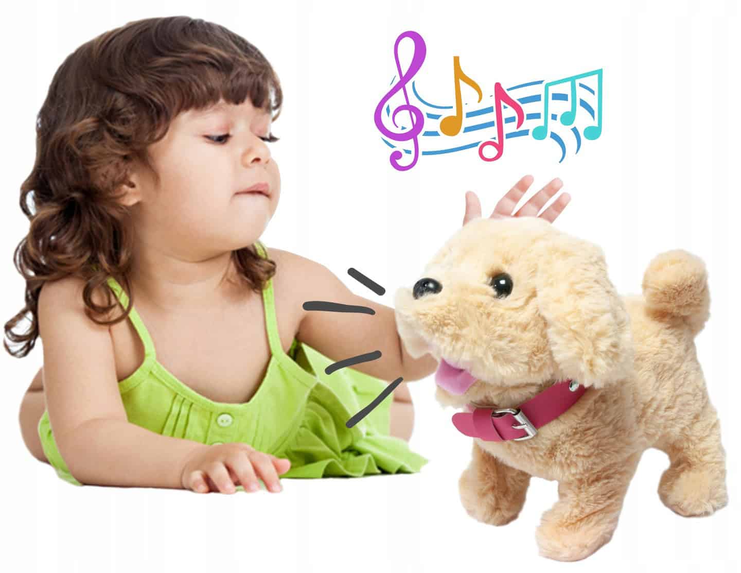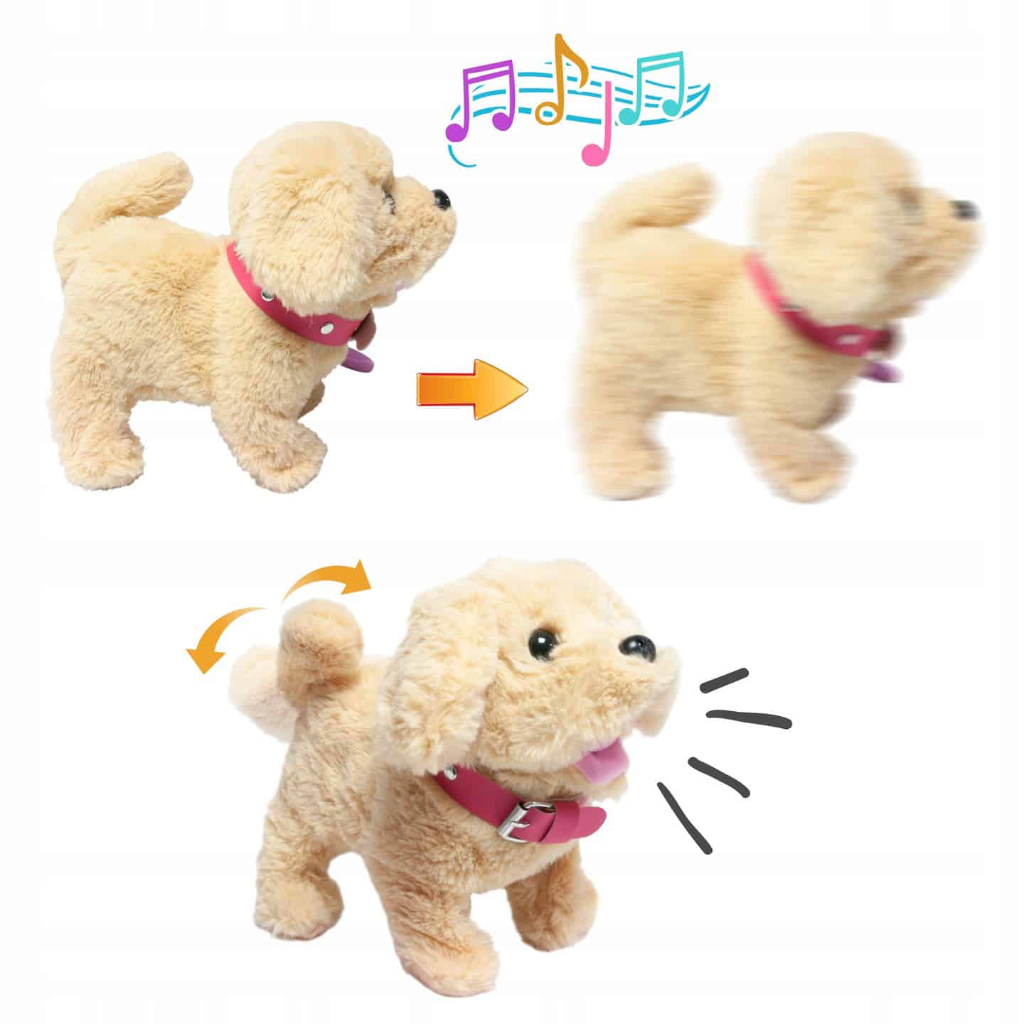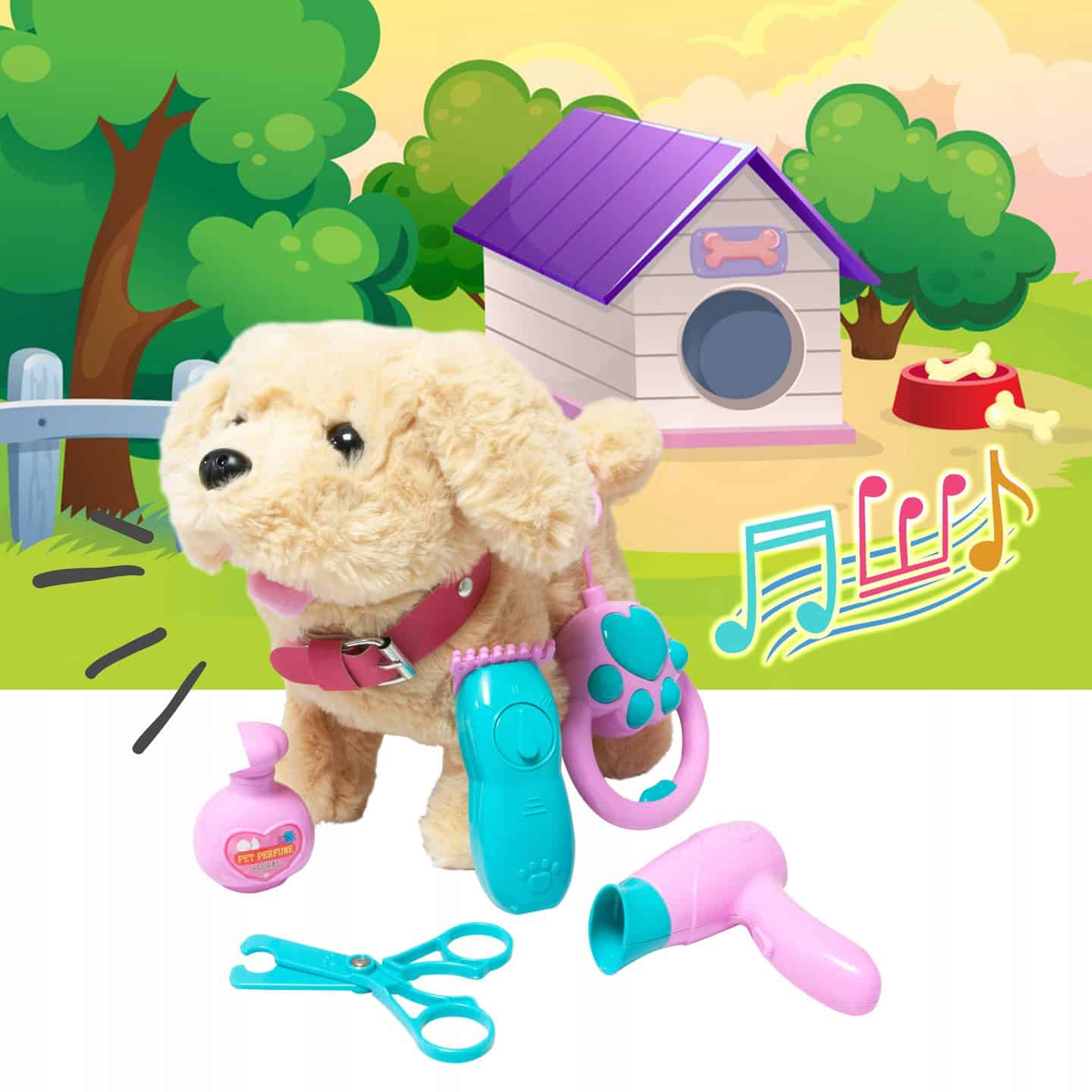 Catel interactiv pentru copii cu sunete, mers, melodii, lesa si accesorii de ingrijire, 23x12x21 cm, bej Mob360