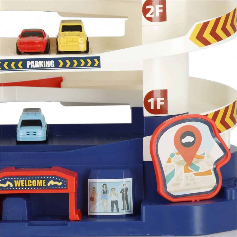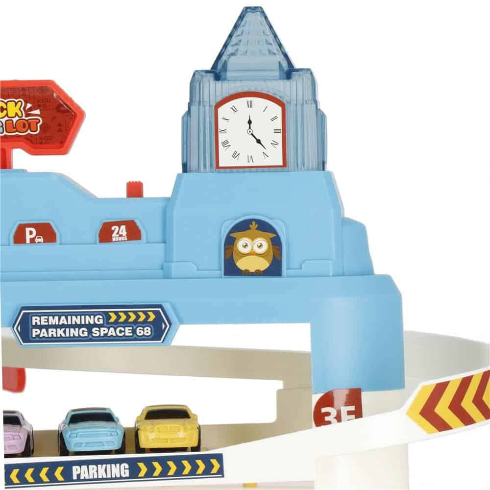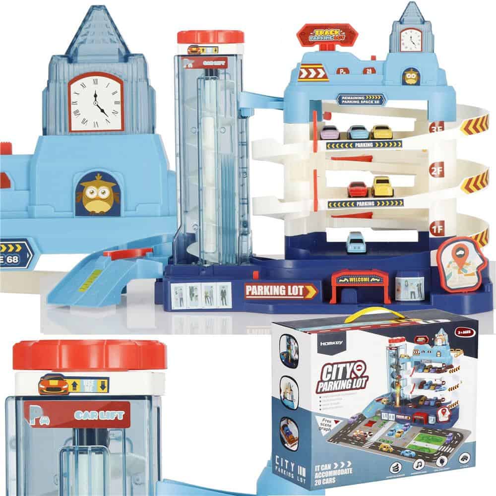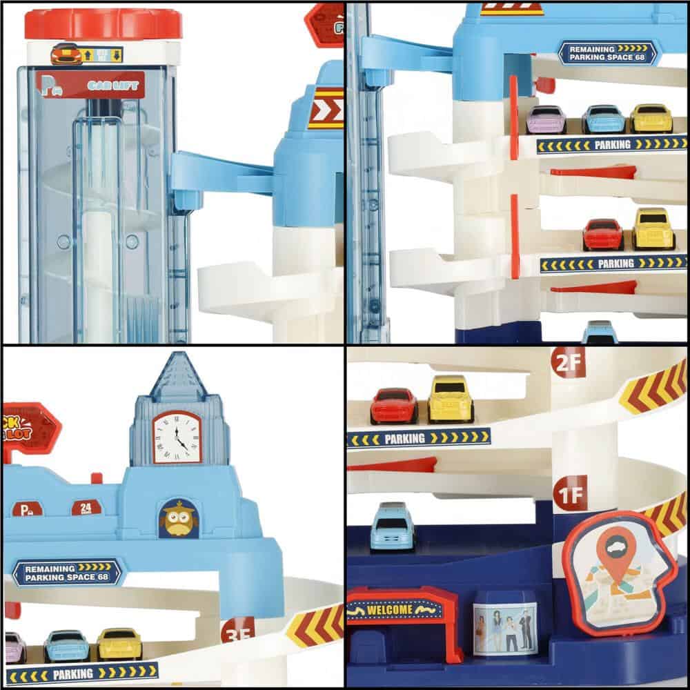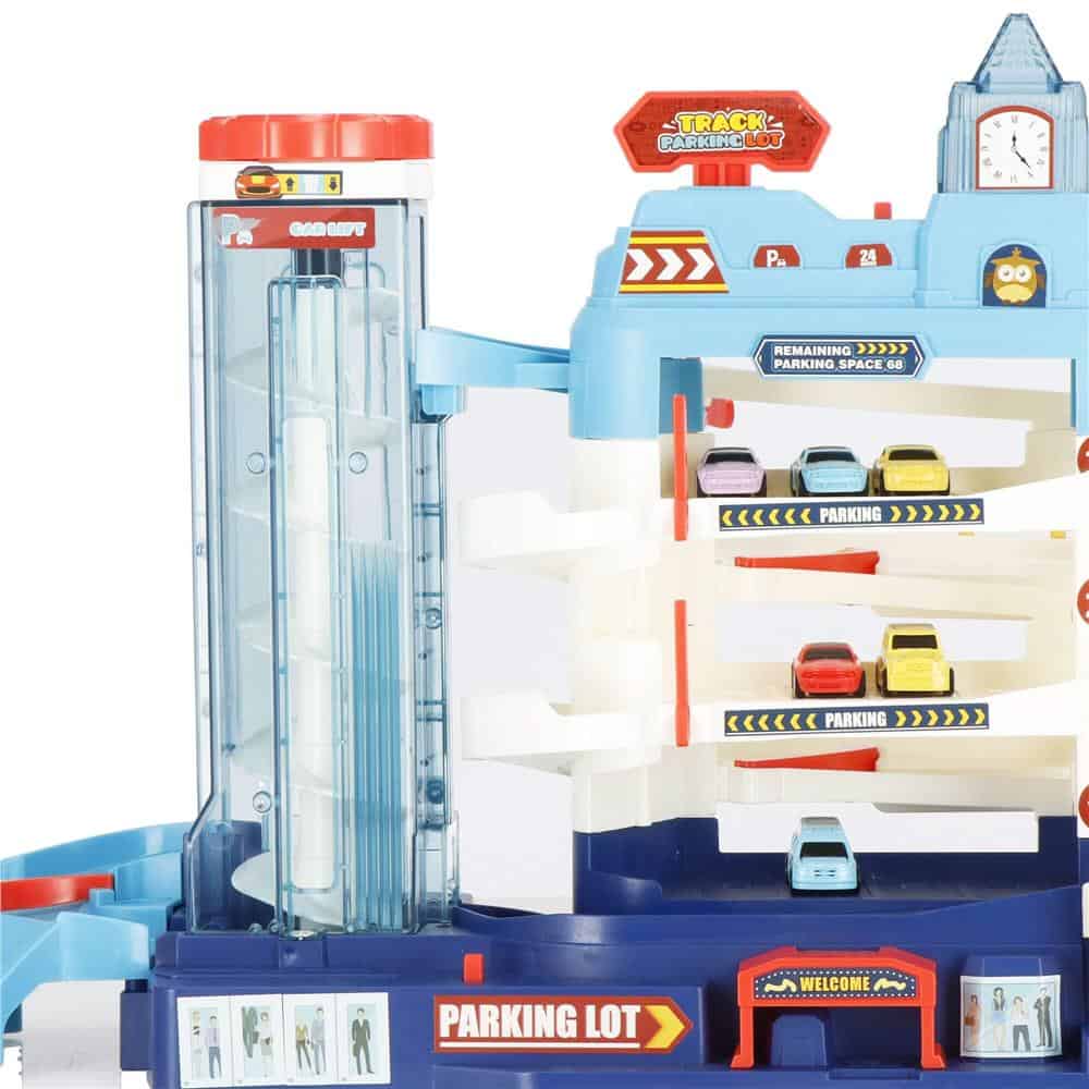 Circuit cu parcare pentru masinute, cu lumini si sunete, 6 masinute, cu nivele cu lift de urcare Mob360 – produs disponibil în magazinul Mob360.