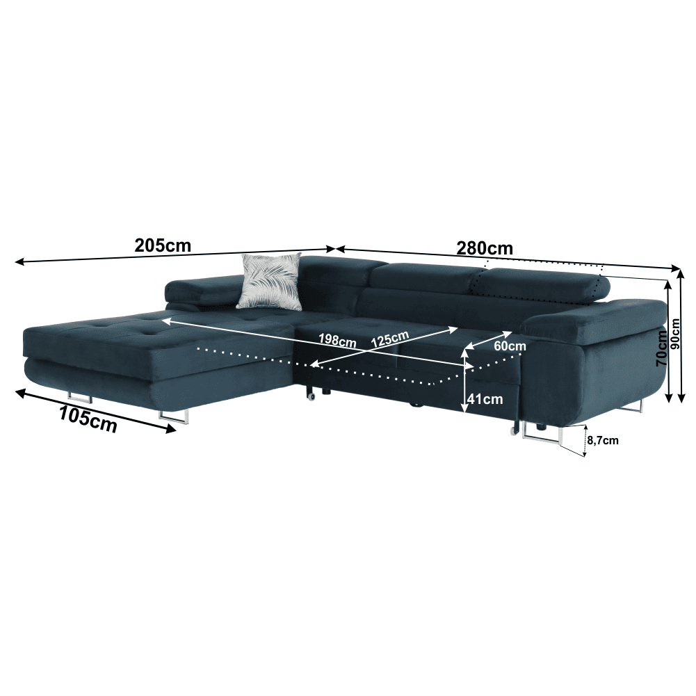 Dimensiuni (lxLxh): 280x205x70/90 cm