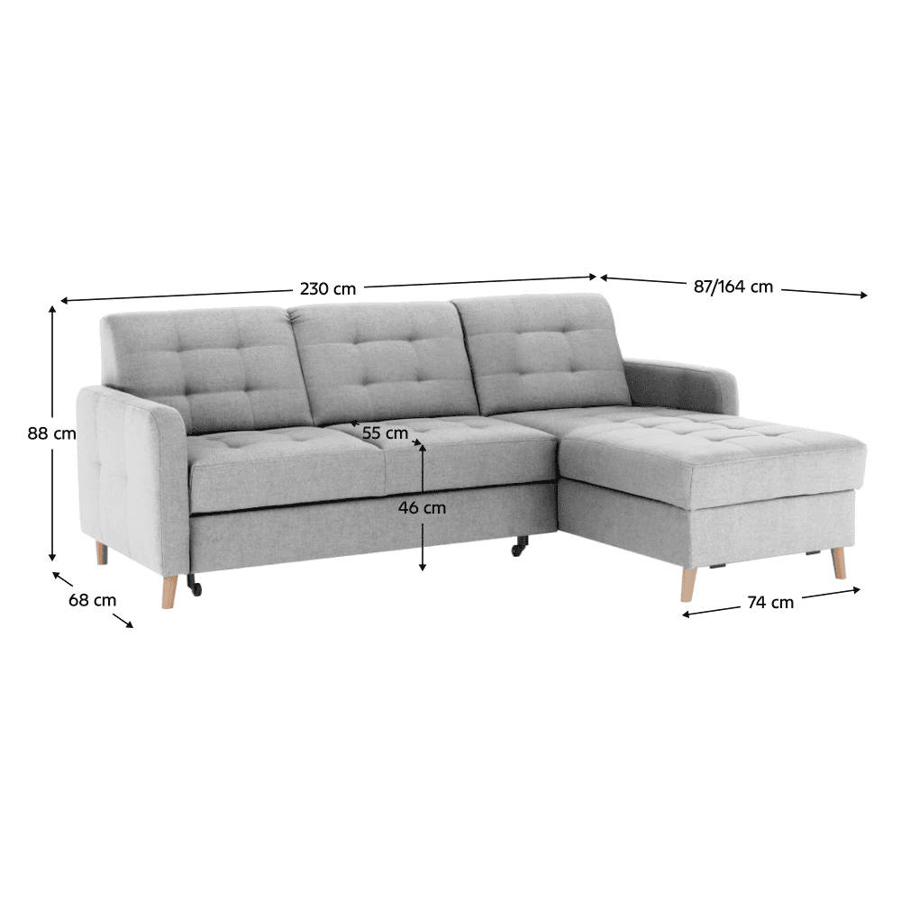 Dimensiuni (LxGxÎ): 230×87/164×88 cm