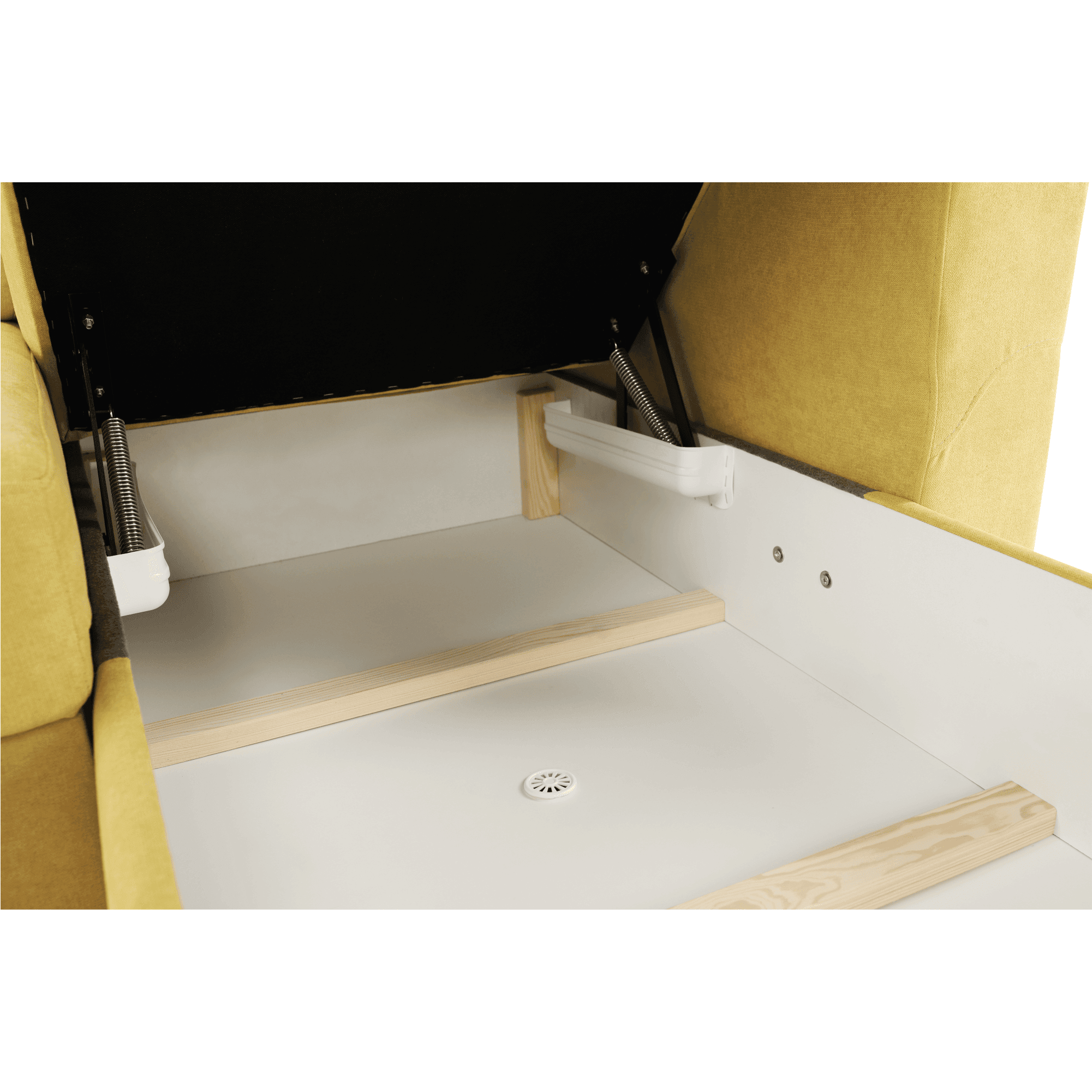 Colţar tapiţat de lux pe stânga, extensibil şi cu spaţiu pentru depozitare MARIETA U.