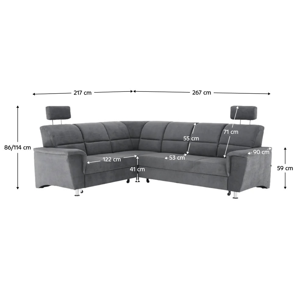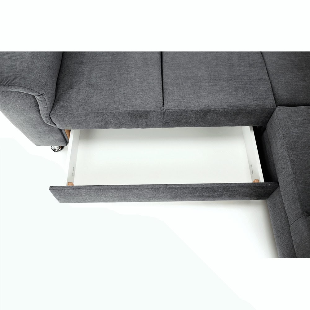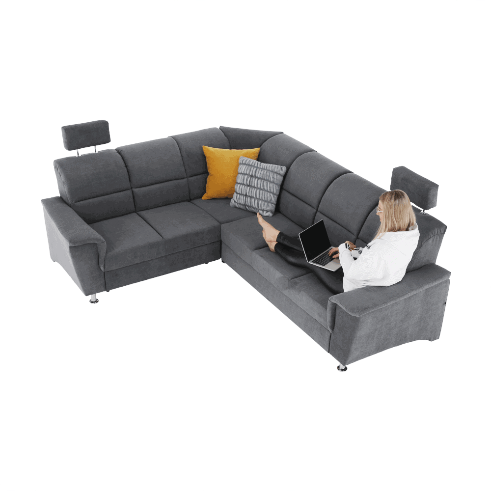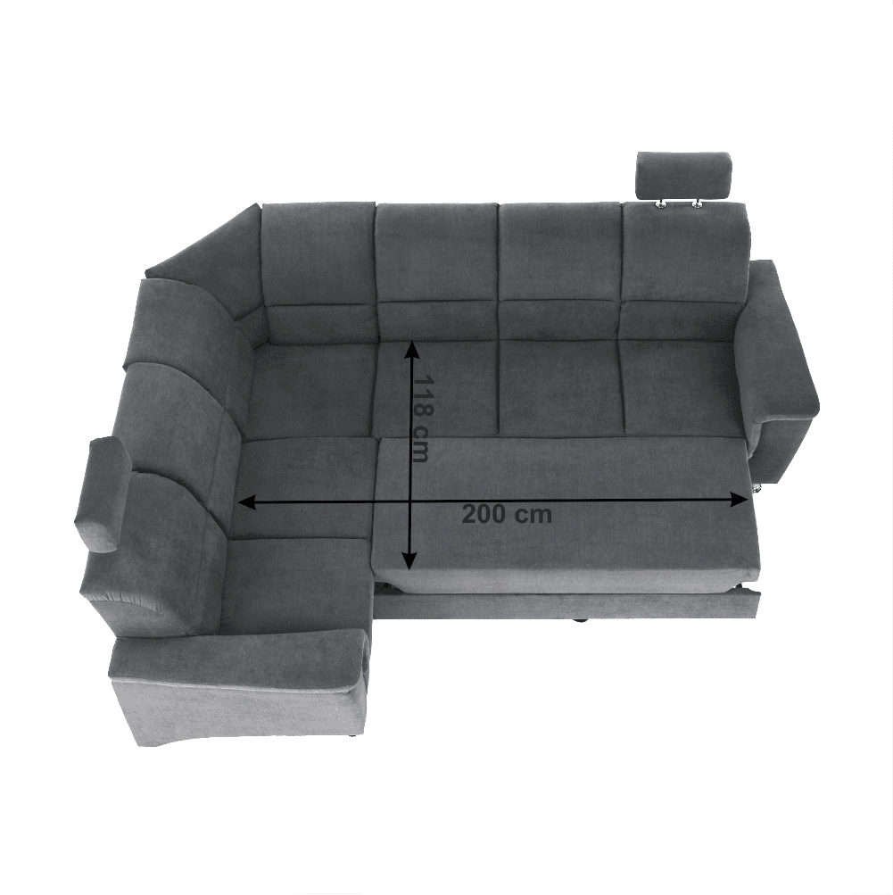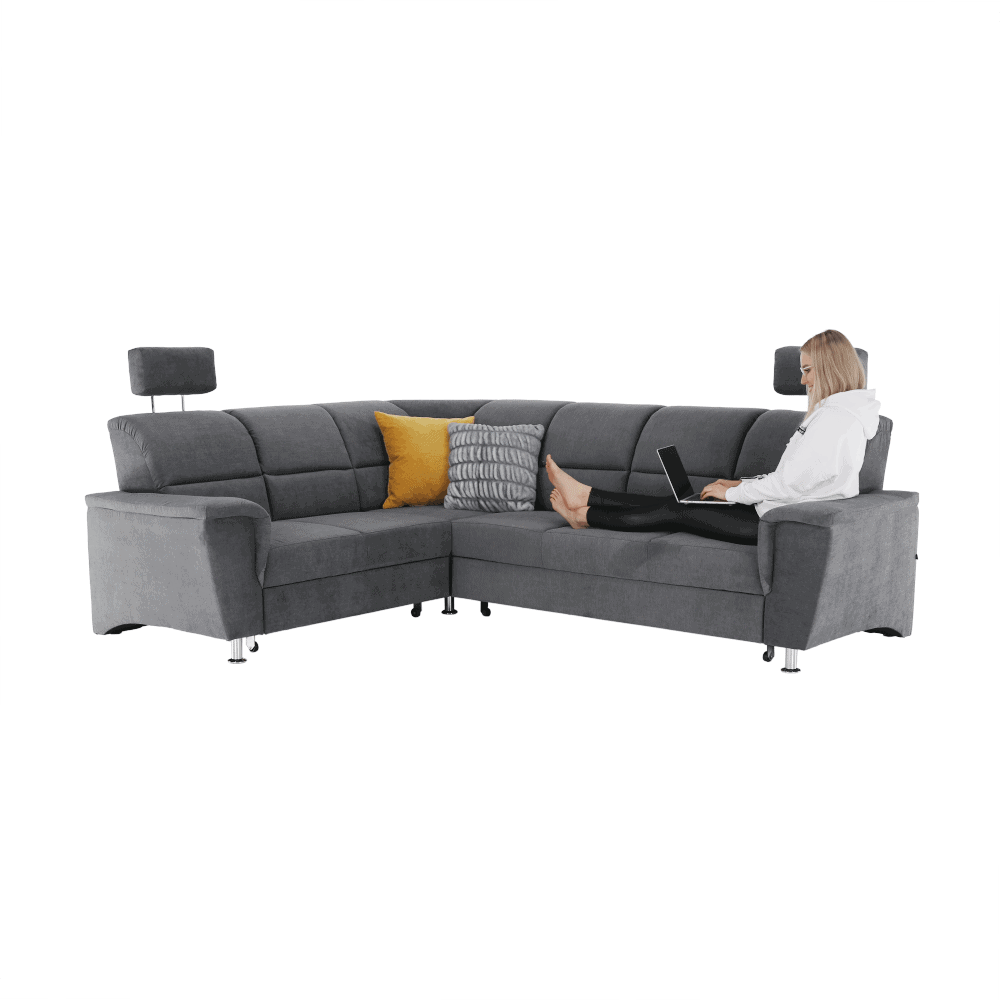 Colţar extensibil, material textil gri, model stânga, SANTIAGO