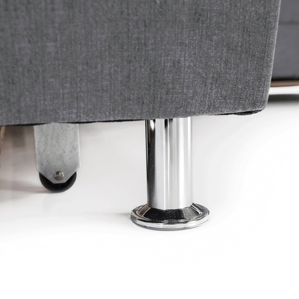 Picioare metalice cu finisaj cromat.
