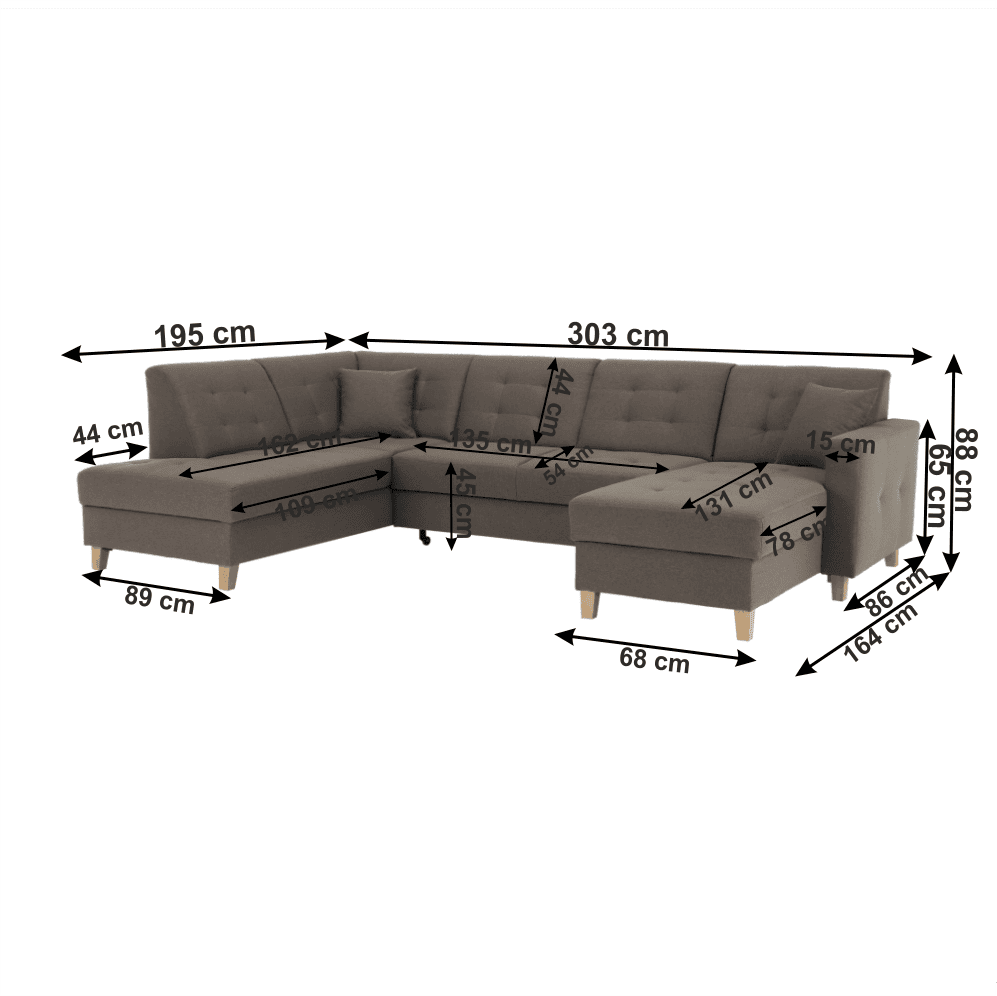 Dimensiuni (lxhxA): 303x88x164/195 cm