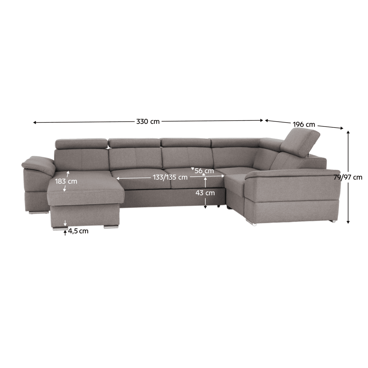 Dimensiuni (lxhxA): 330×79/97×183/196 cm