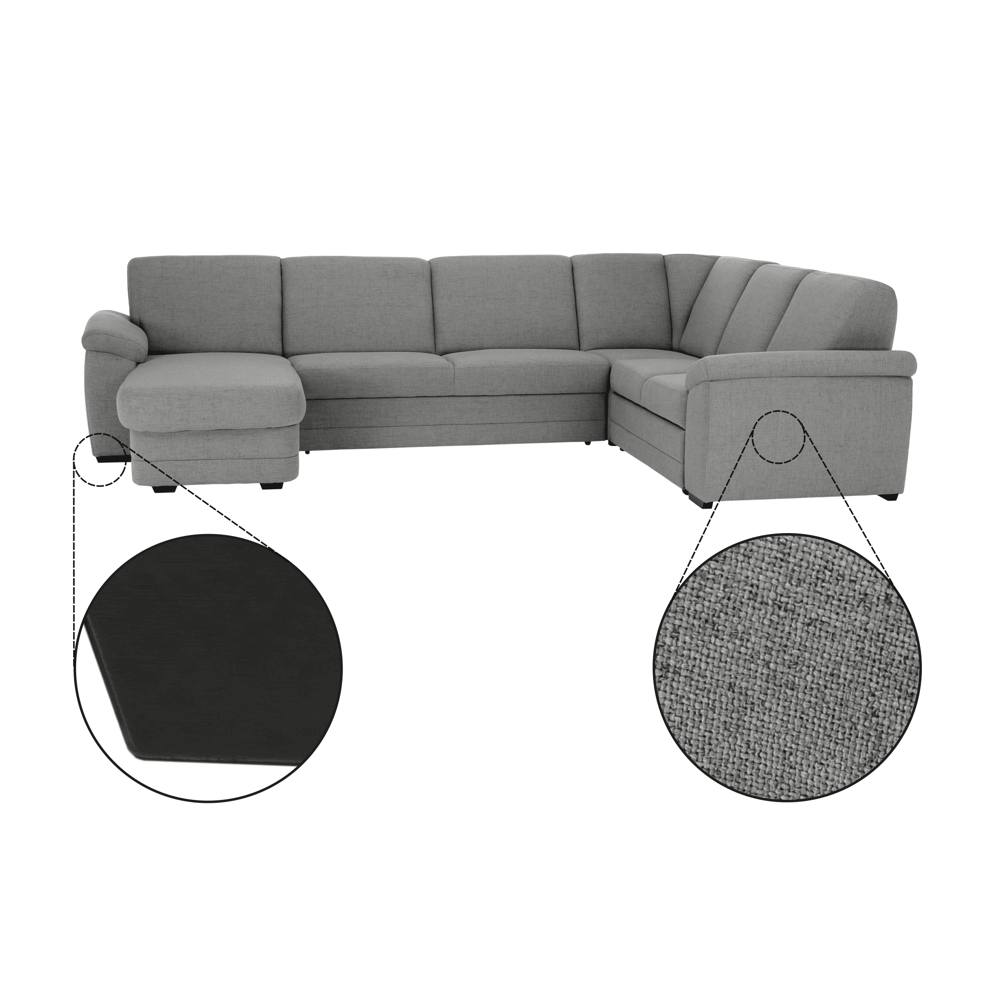 Colţar în formă de U, material textil gri, model stânga, BITER U