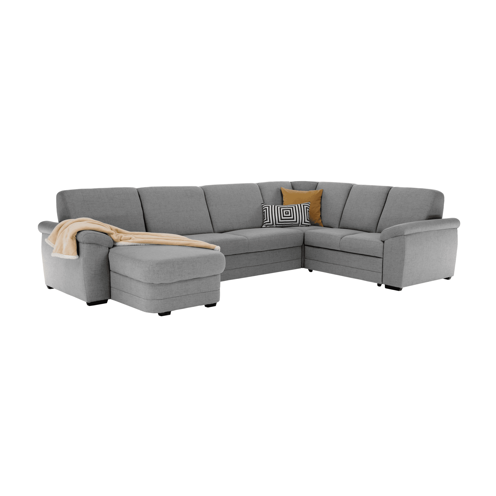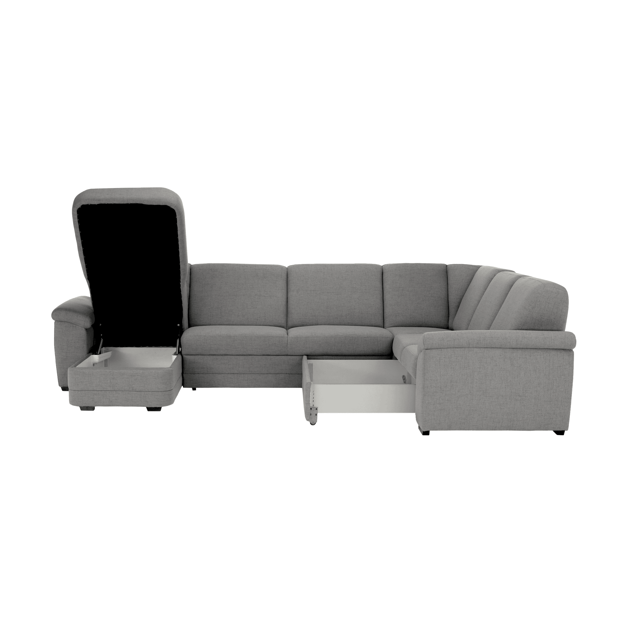Colţar extensibil BITER U în formă de U, complet tapiţat, cu spaţiu de depozitare, model stânga,
