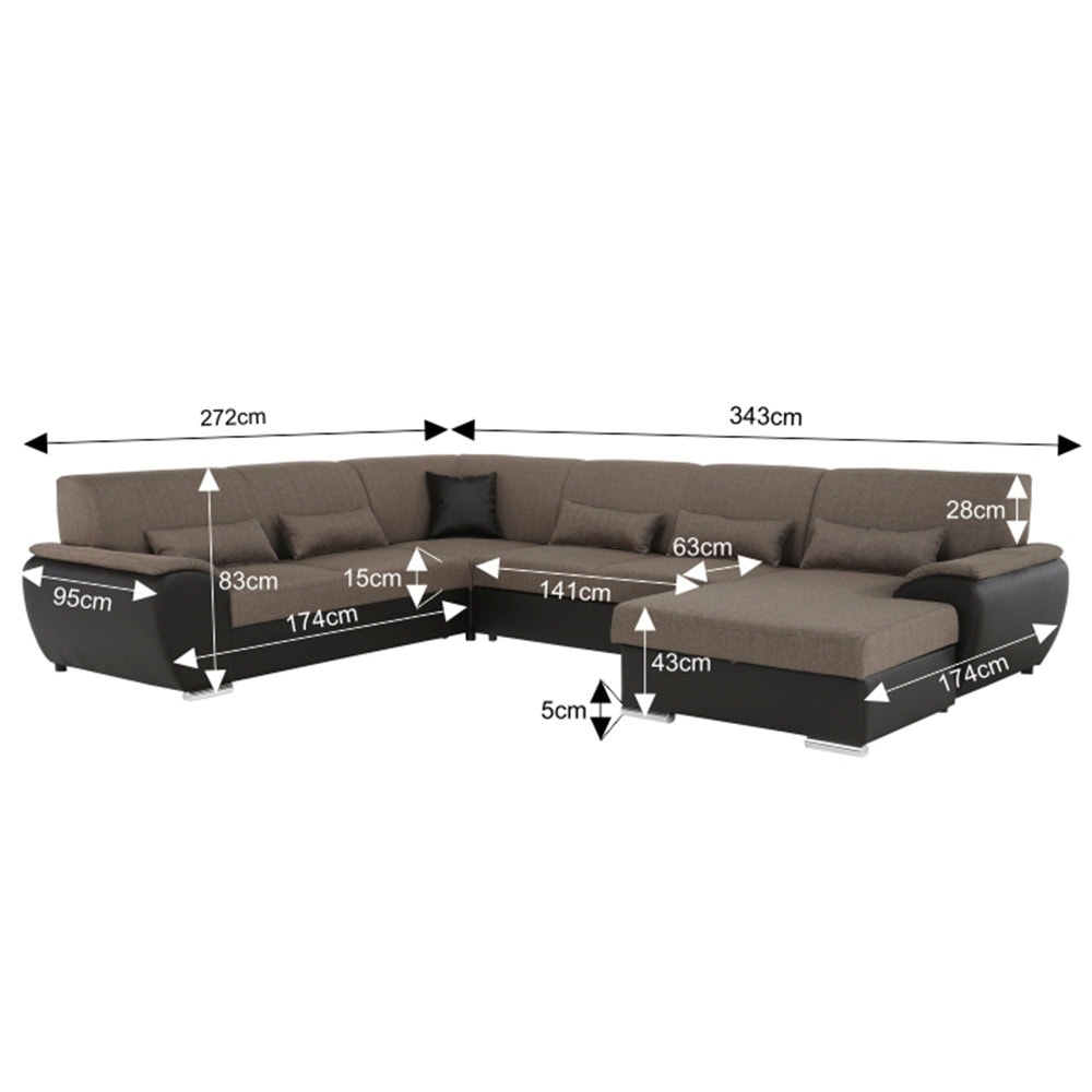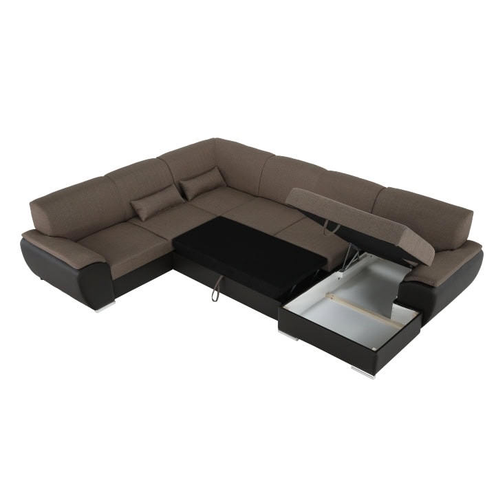 Colţar în formă de U, material textil maro/piele ecologică maro, dreapta, EMILY U