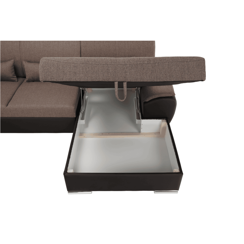 Colţar extensibil complet tapiţat EMILY U cu spaţiu de depozitare,