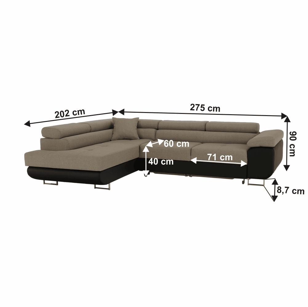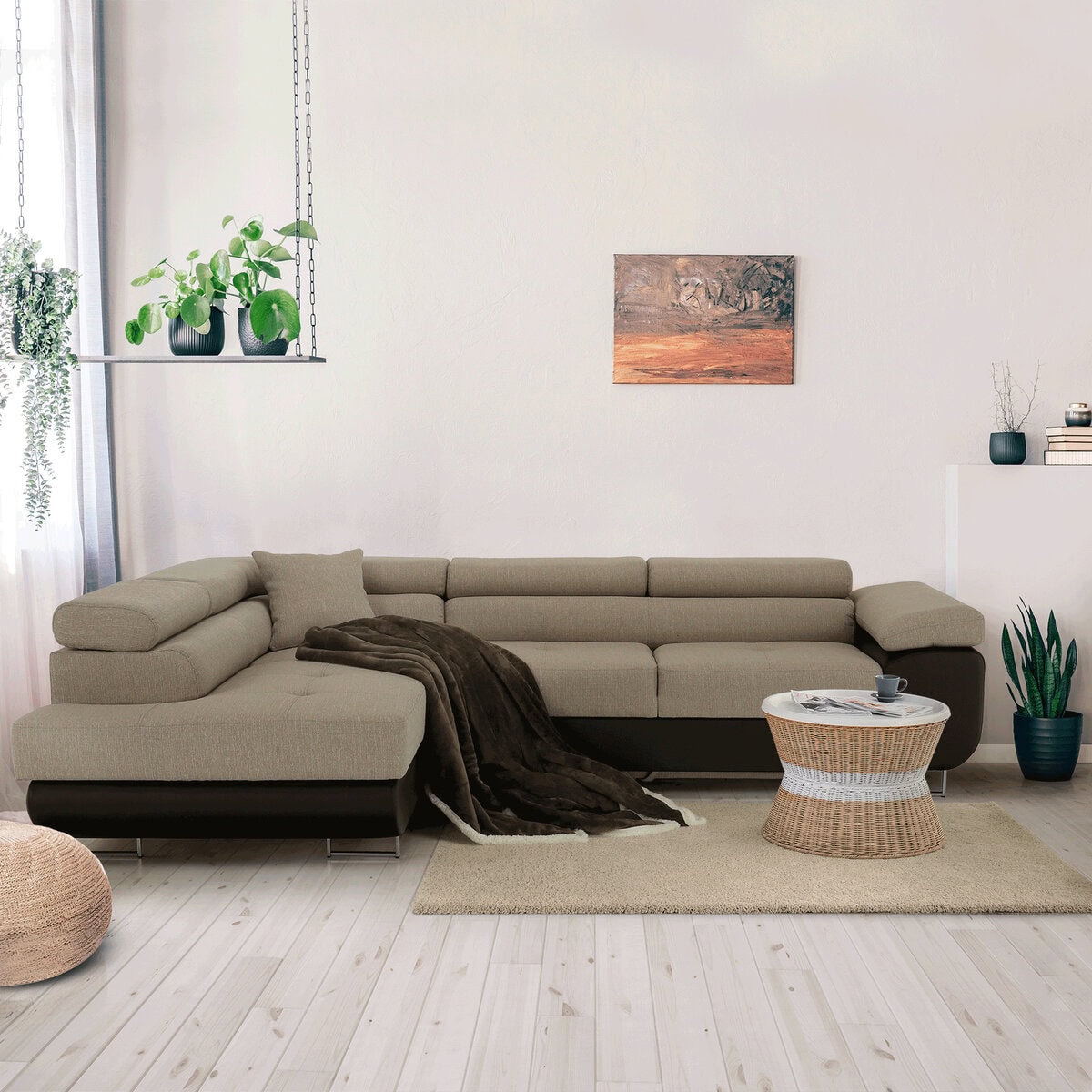 Colţar, maro/bej, model stânga, AMARETO NEW