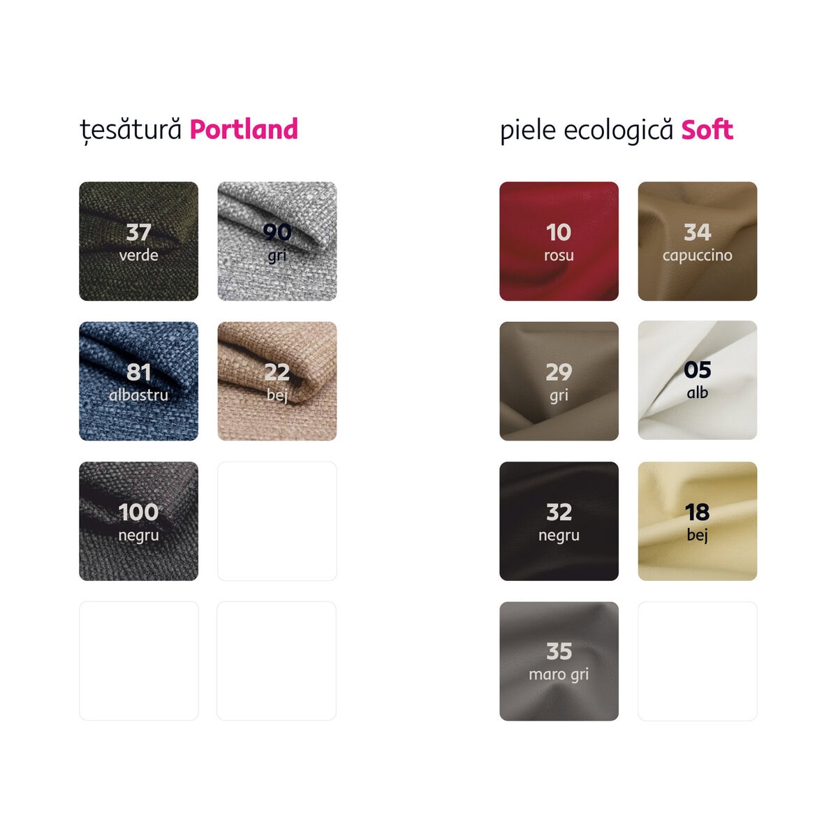 Posibilitatea de a comanda în 5 nuanţe a materialului textil Portland şi în 7 nuanţe de piele ecologică la preţul de 6 715,-. Pentru o comandă individuală, este necesar să plătiţi un avans de 20% din sumă. După achitarea avansului, comanda dvs. va fi dată în producţie. Durata de livrare este între 6-8 săptămâni.