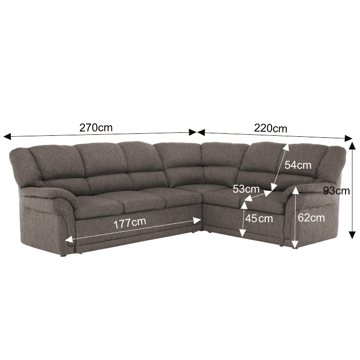Dimensiuni (LxAxH): 270x220x93 cm, suprafaţă de dormit (Lxl) 120×200 cm, înălţimea x adâncimea şederii:45×53 cm. Înălţimea spaţiului inferior de la podea: 2 cm.