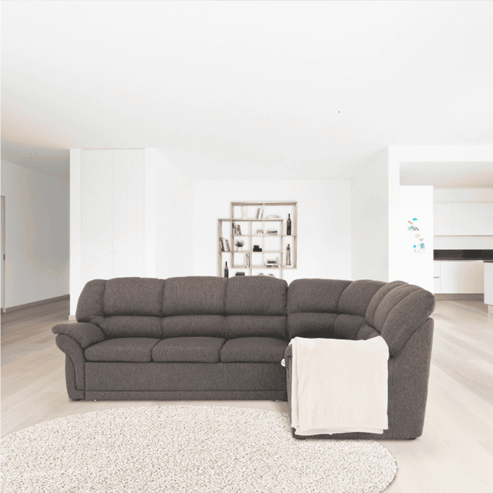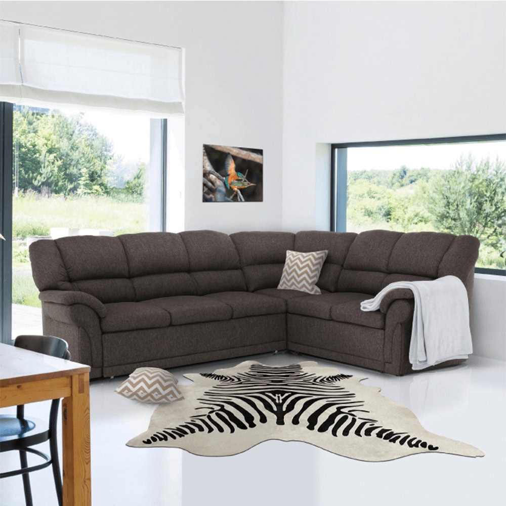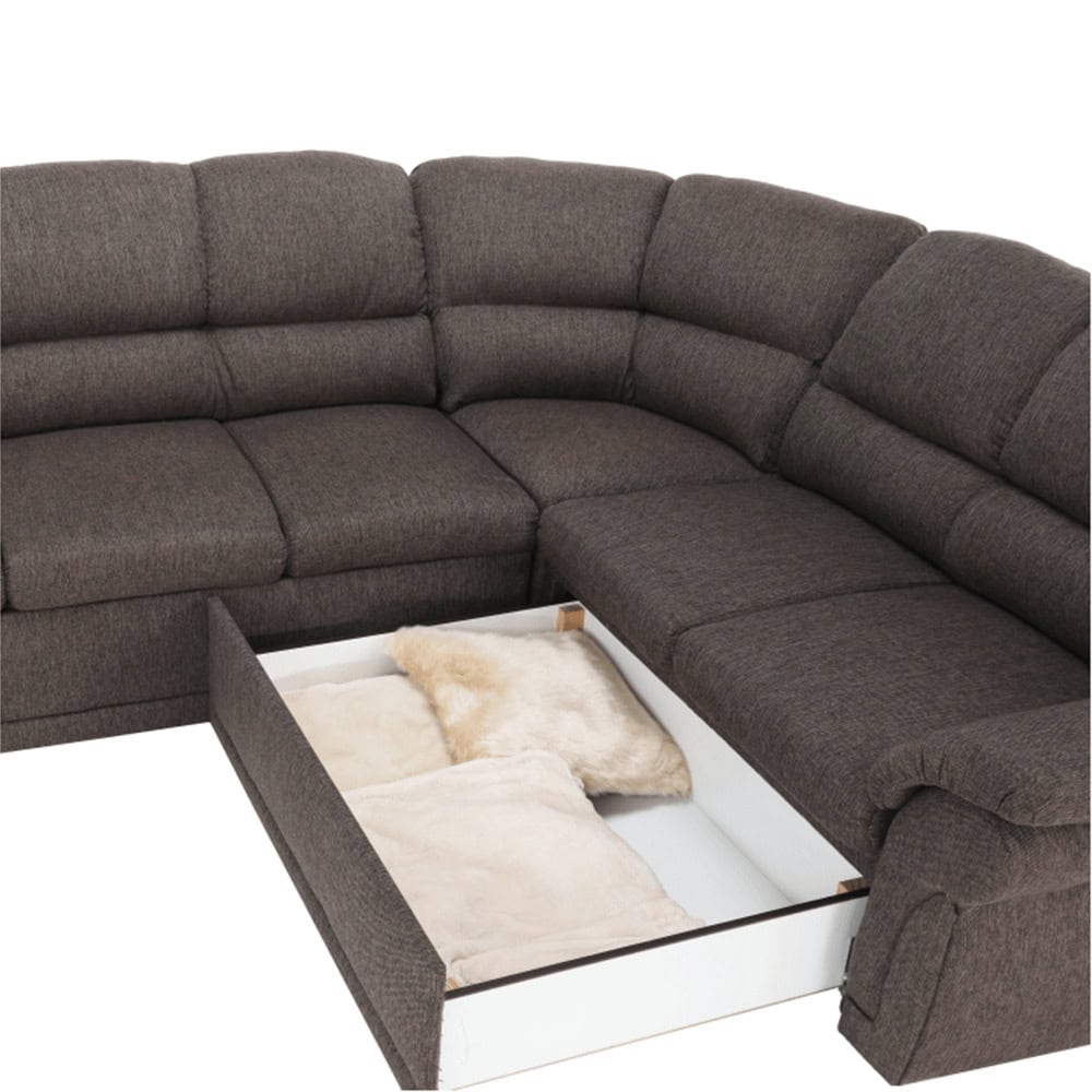 Colţar extensibil cu spaţiu pentru depozitare, model S/D, material: textil Hugo 05 maro în stoc.