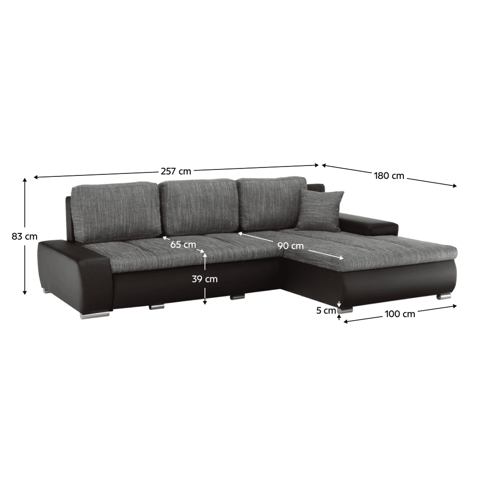 Dimensiuni (LxAxH): 257x180x83 cm, suprafaţă de dormit: (Lxl): 149×206 cm