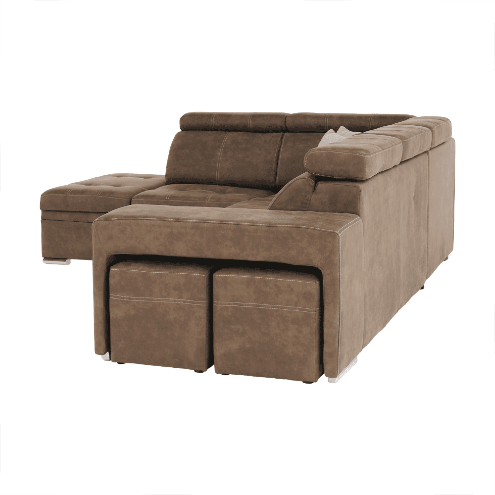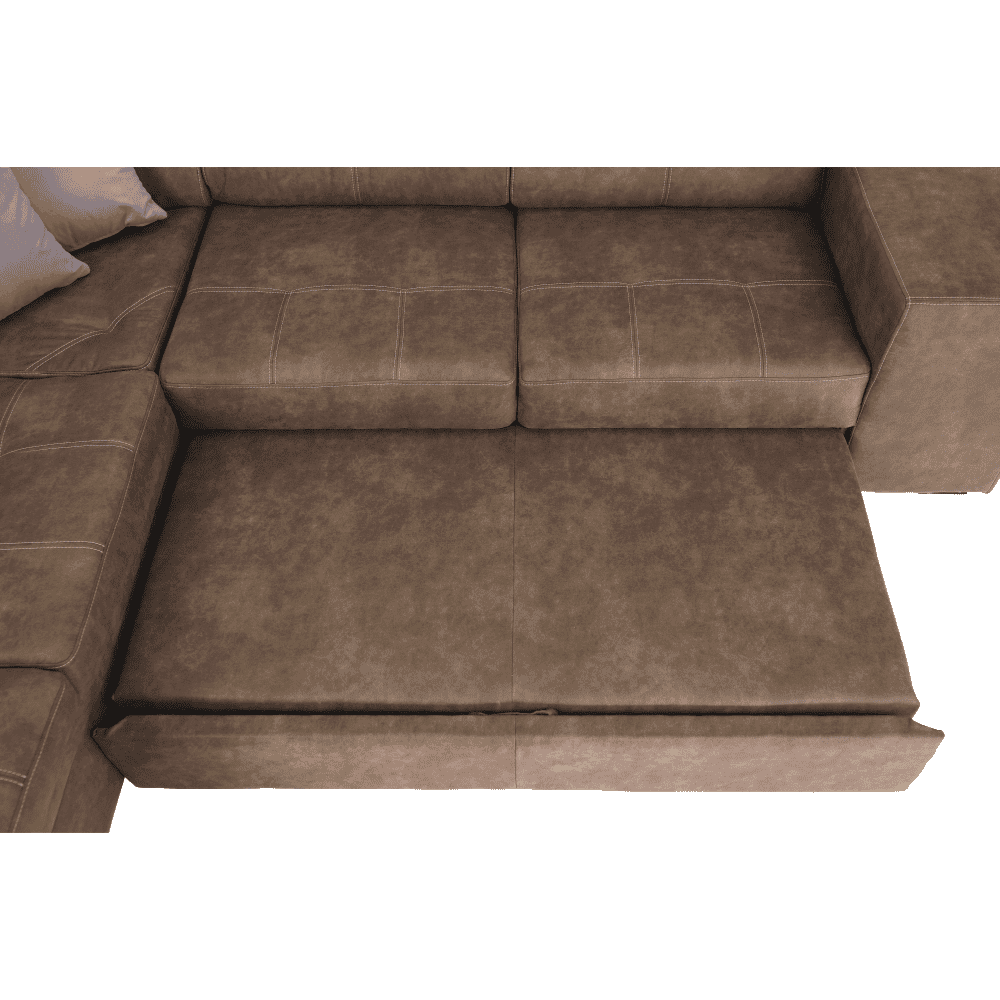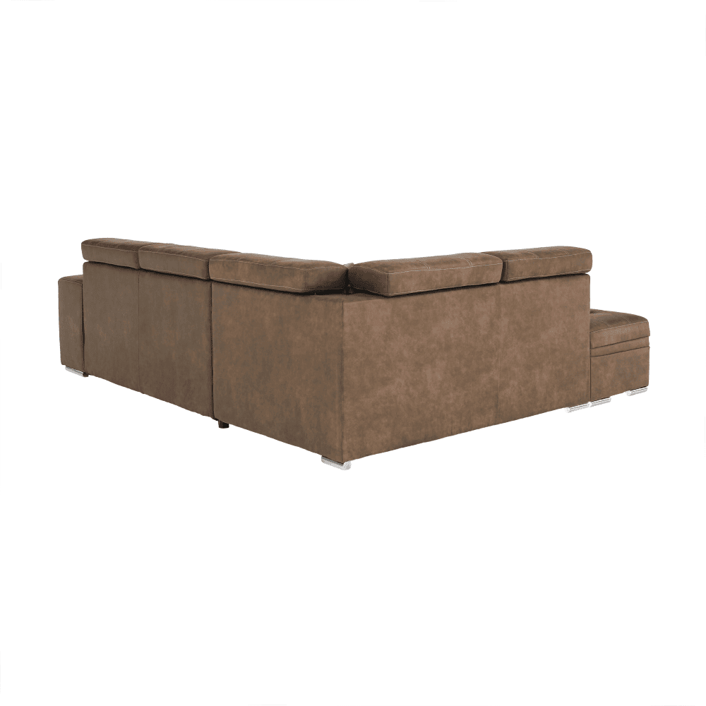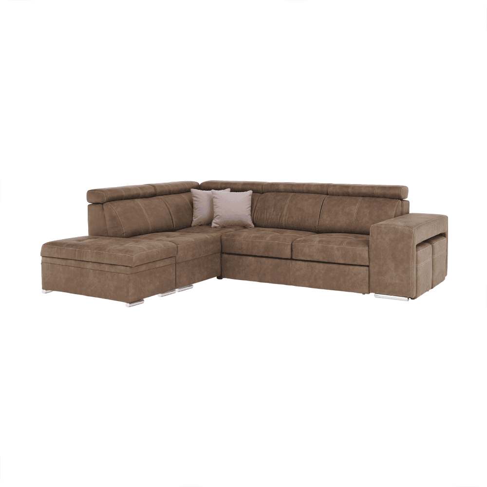 Colţar extensibil tapiţat, cu loc de depozitare şi tetiere reglabile.