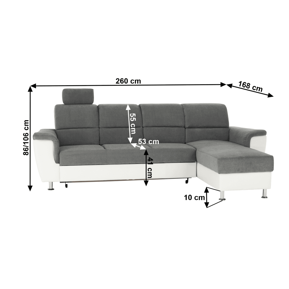 Dimensiuni (lxhxA): 260×86/106×168 cm