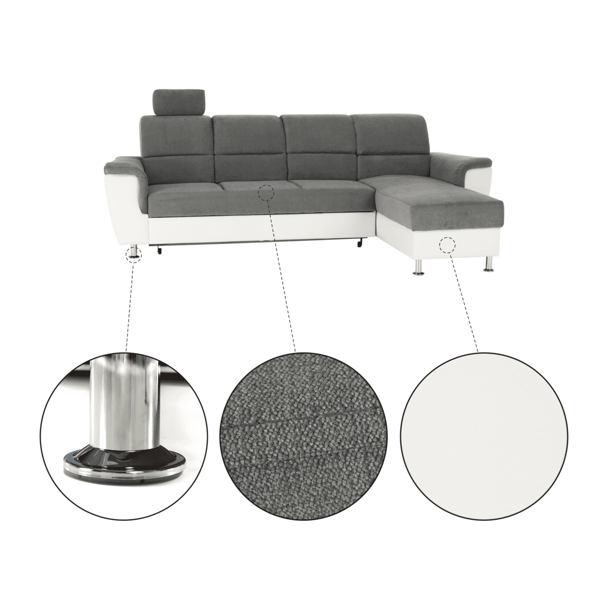 Colţar mic, piele ecologică alb/material textil gri, model dreapta, SANTIAGO COLŢAR MIC