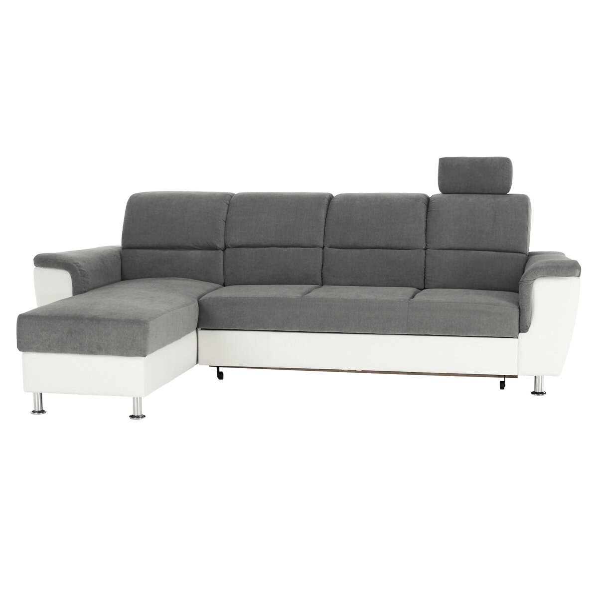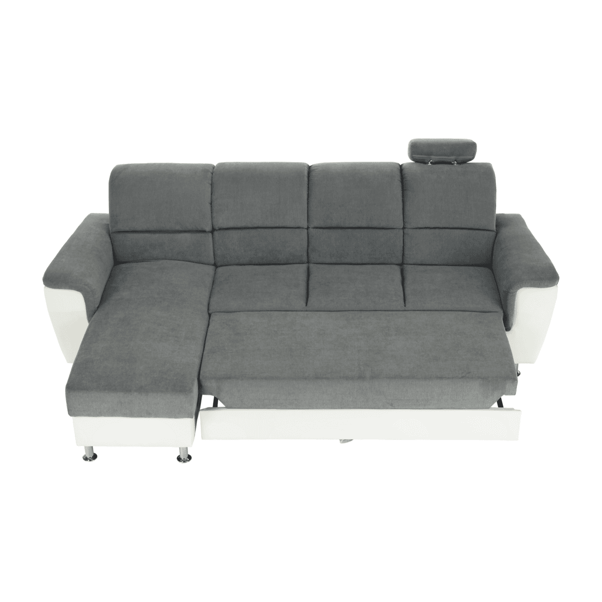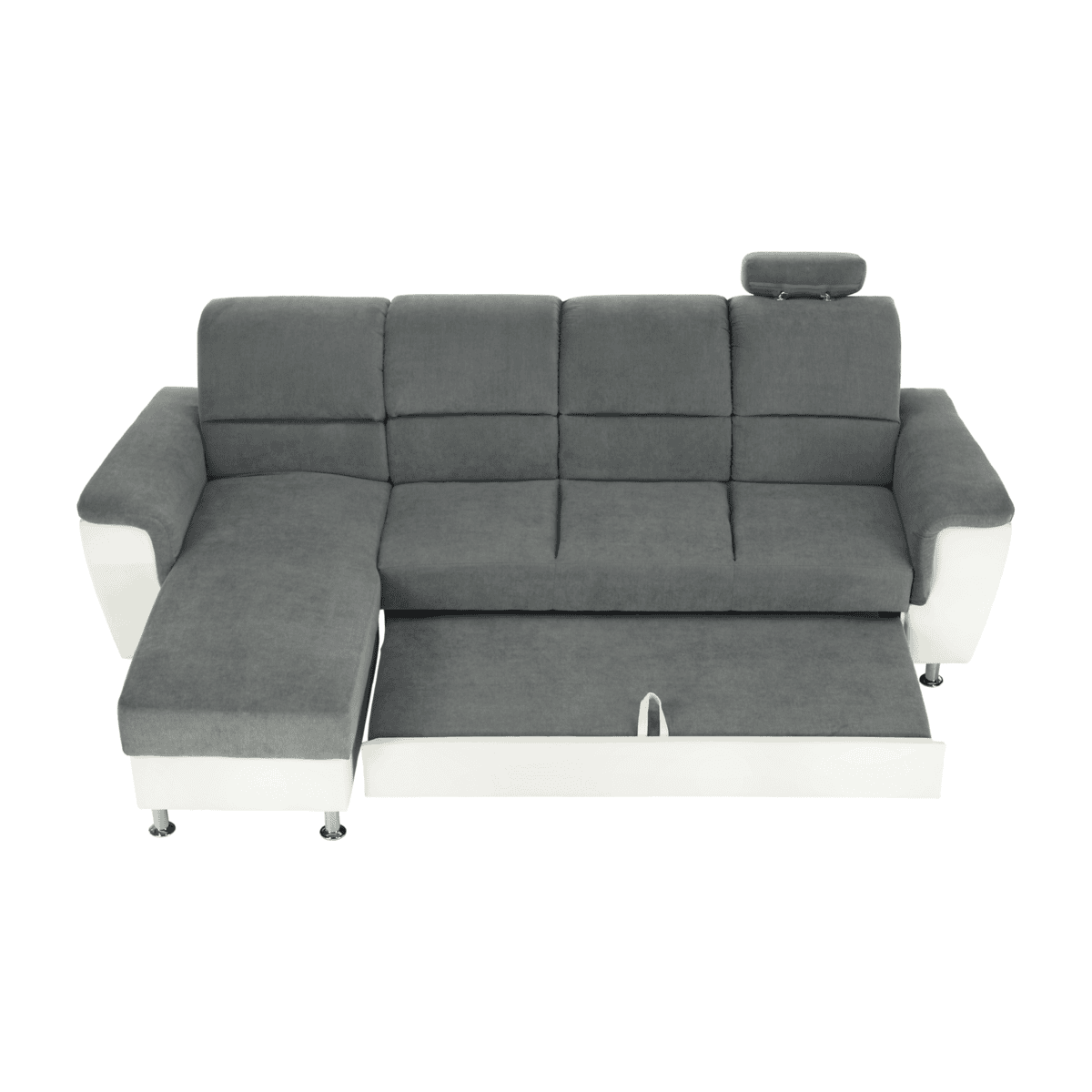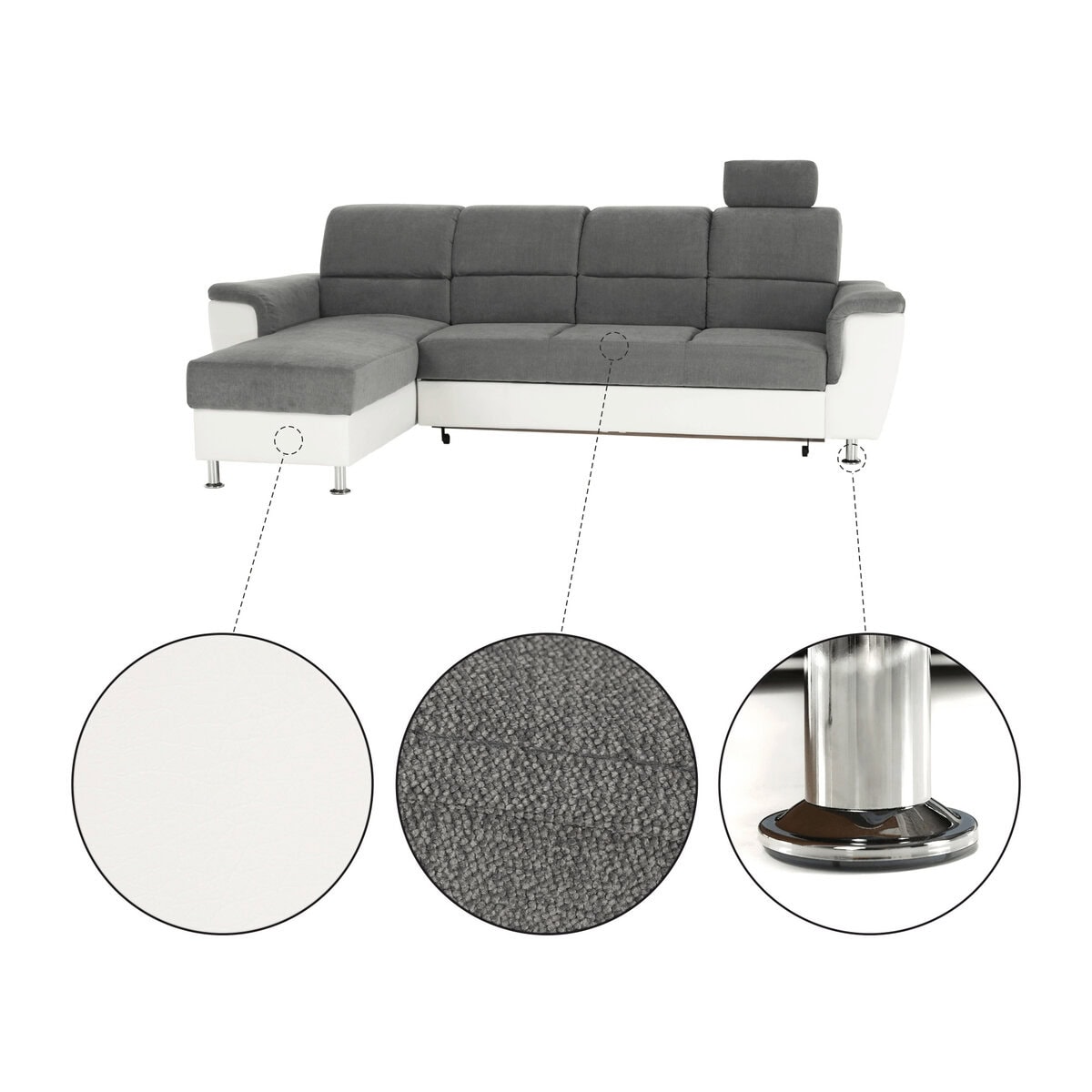 Colţar mic, piele ecologică alb/material textil gri, model stânga, SANTIAGO