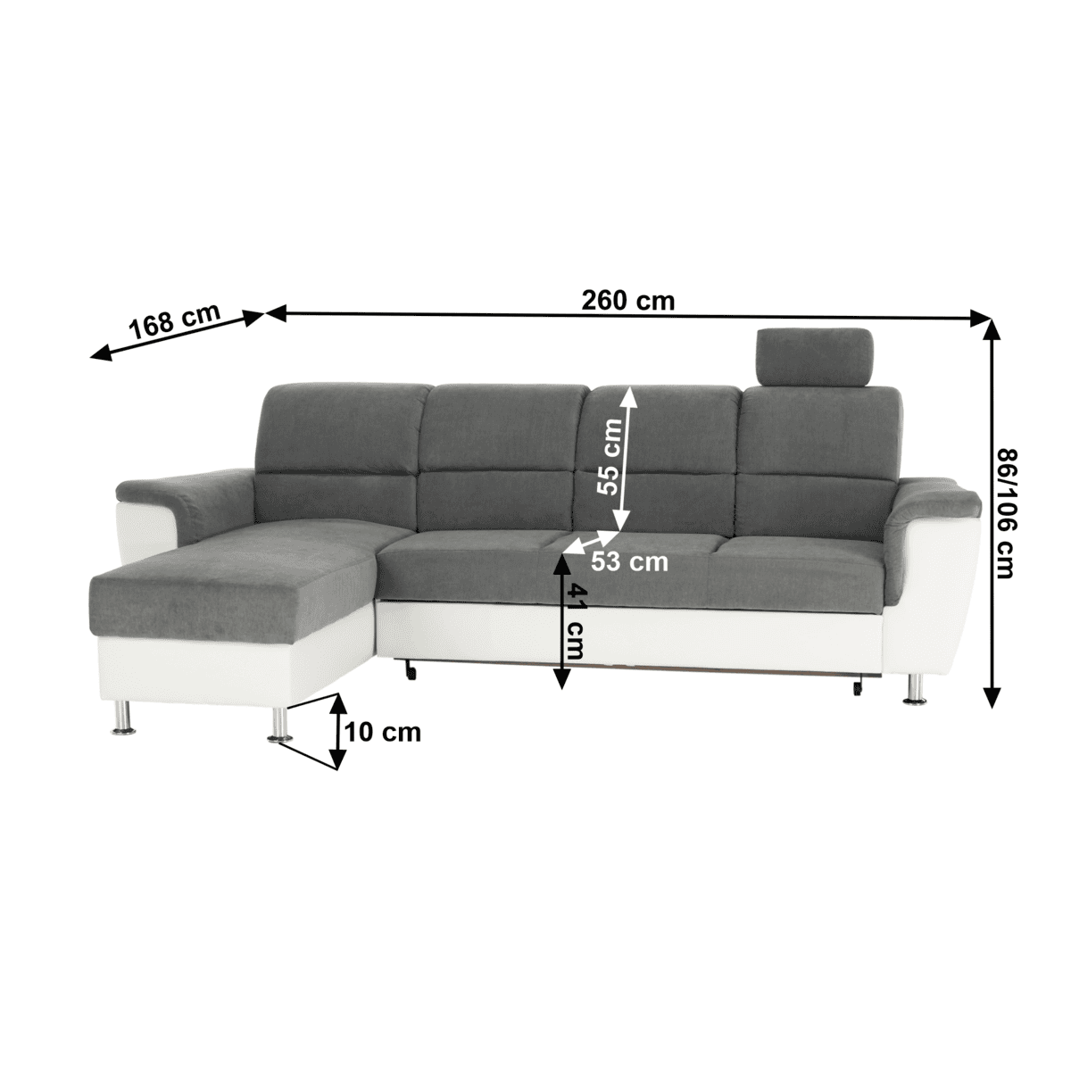 Dimensiuni (lxhxA): 260×86/106×168 cm