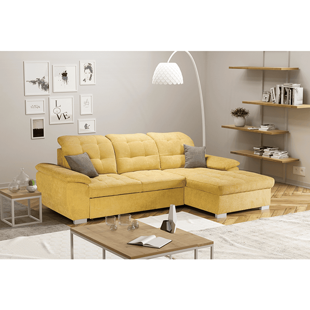 Colţar tapiţat cu colţ extensibil cu depozitare EVANGELIN