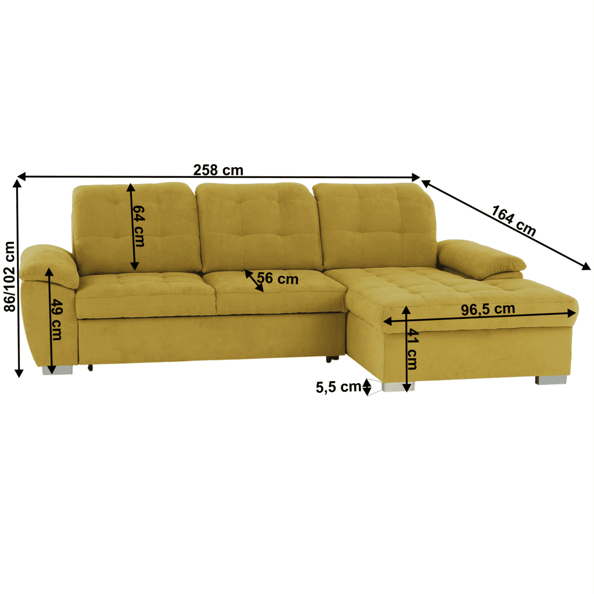 Dimensiuni (LxGxÎ): 258x164x102 / 86 cm