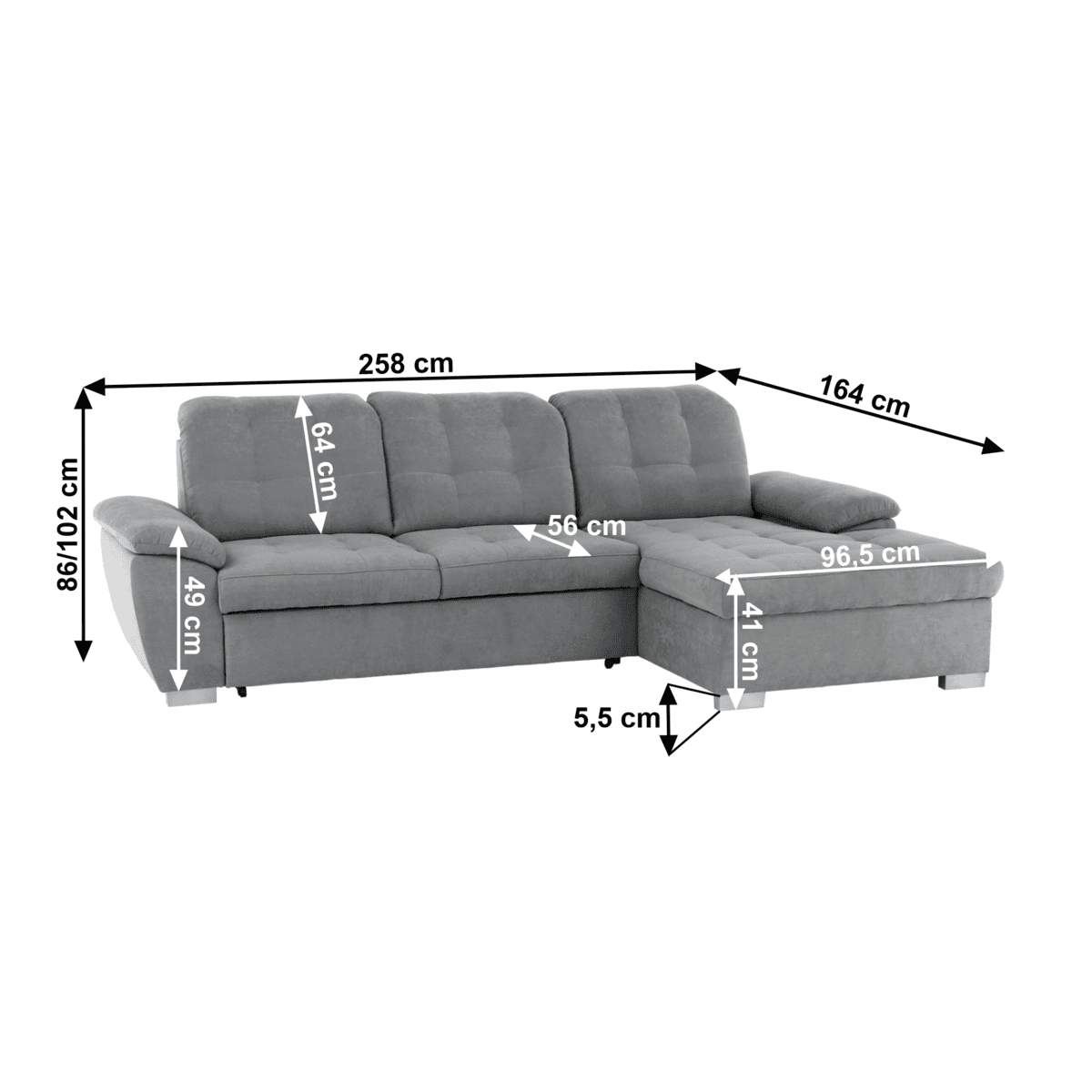 Dimensiuni (lxhxA): 258×102/86×164 cm