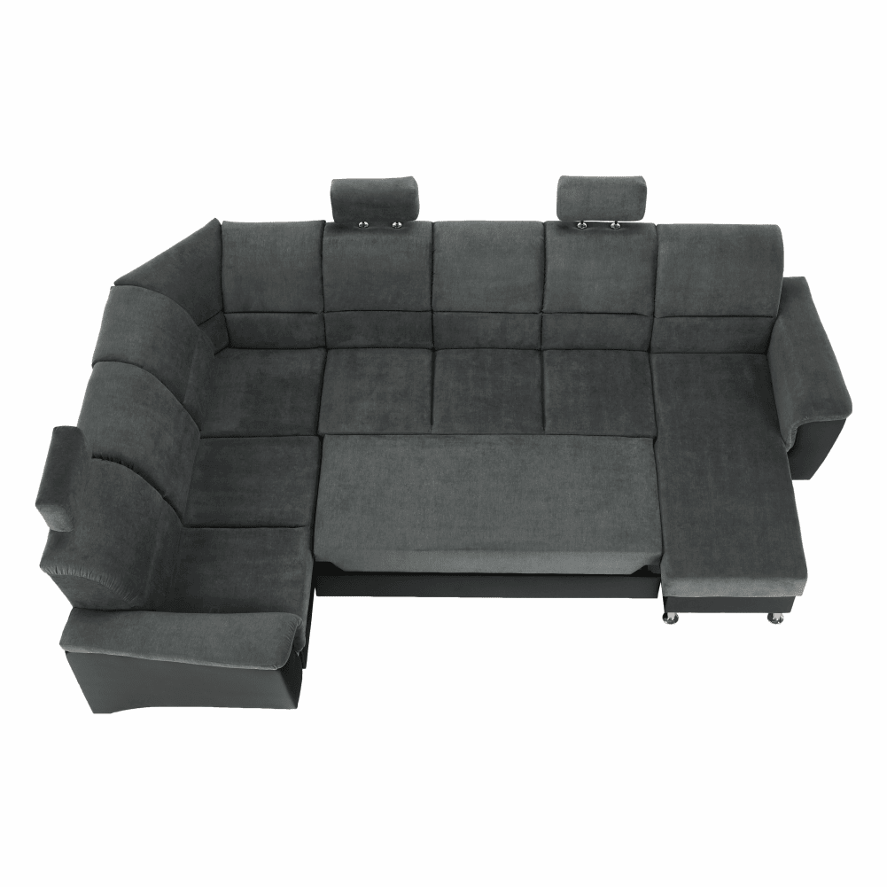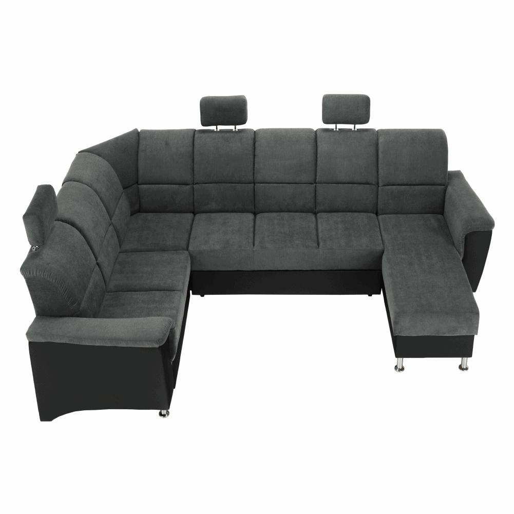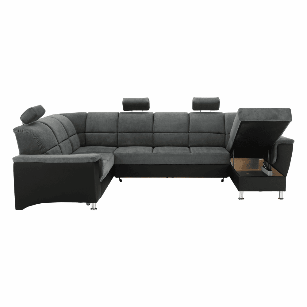 Colţar, piele eco neagră/textil gri închis, stânga, SANTIAGO U