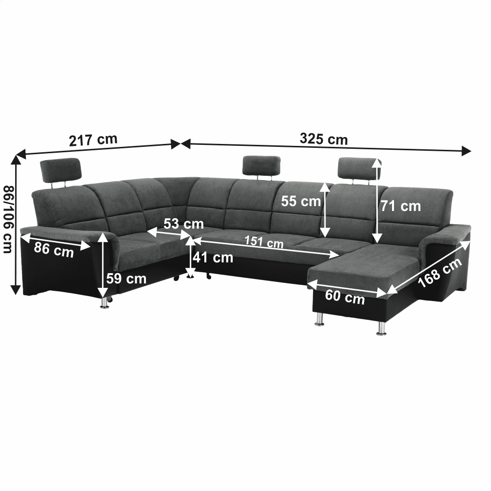 Dimensiuni (LxAxH): 325×86/106×168/217 cm