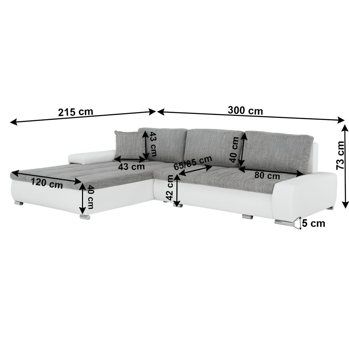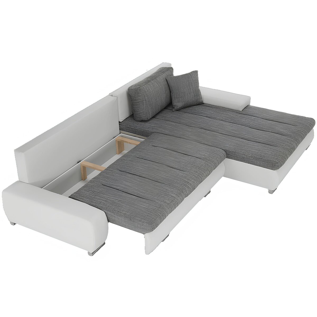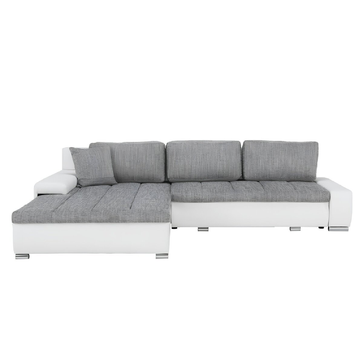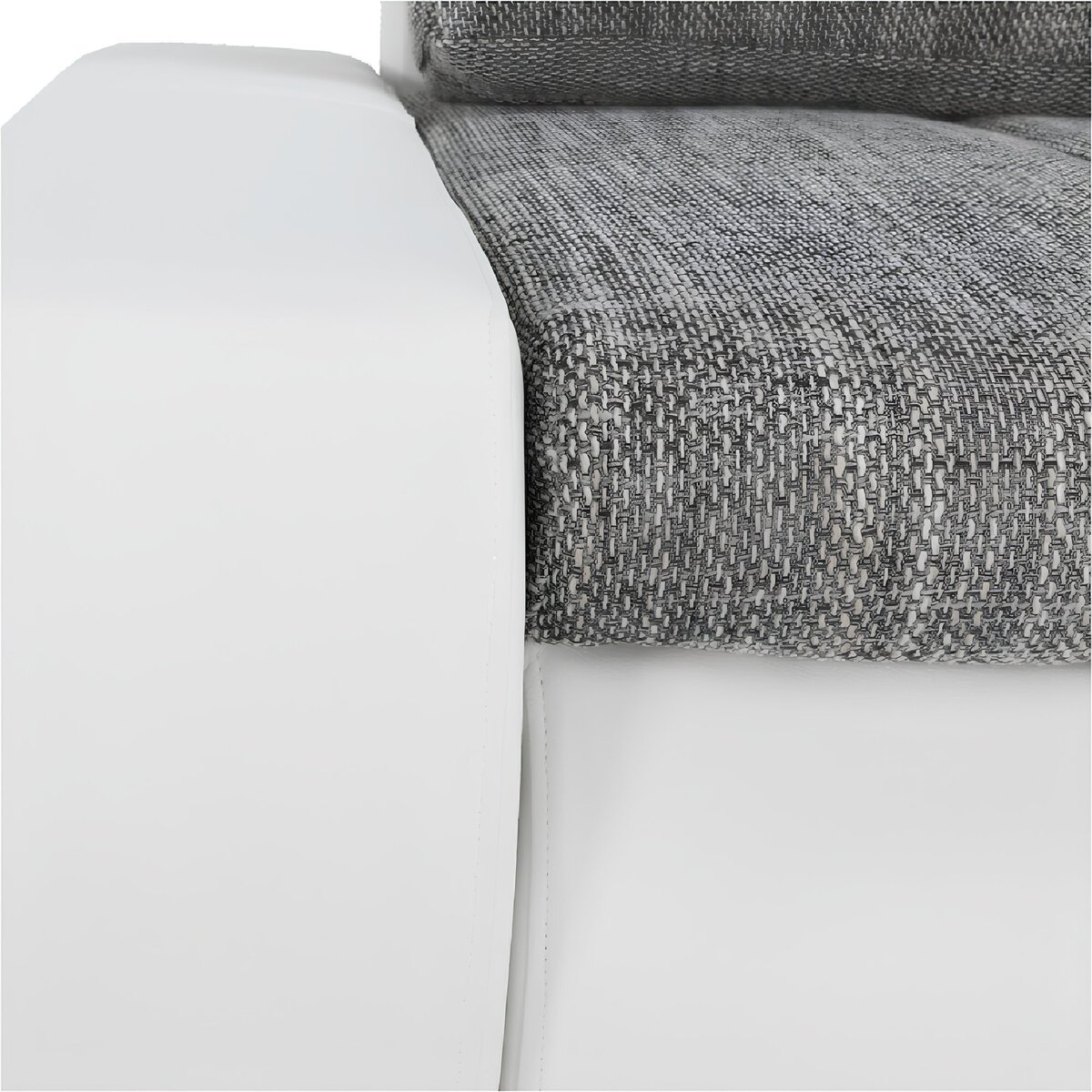 Colţar, piele ecologică/ alb/material gri melir, TONIKS