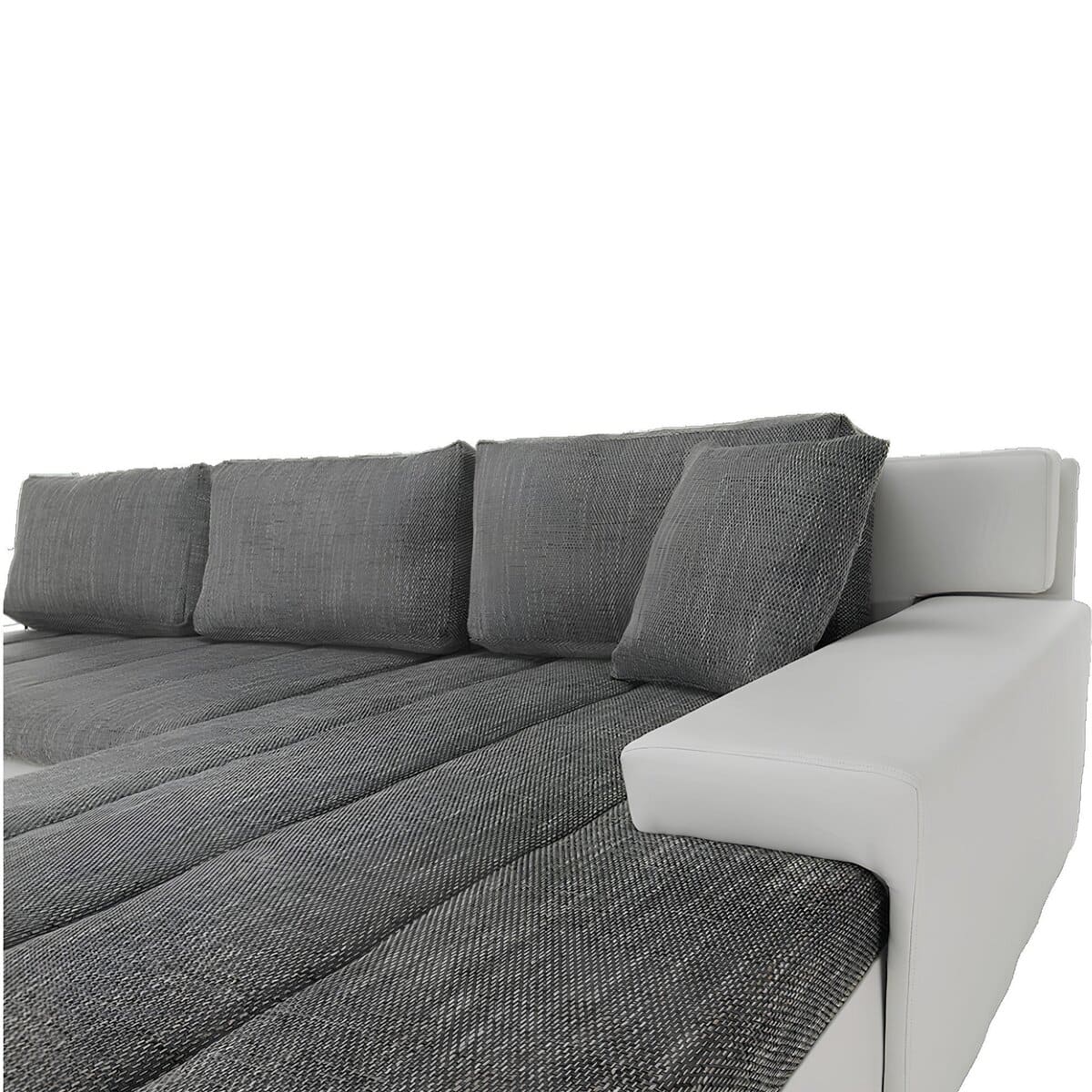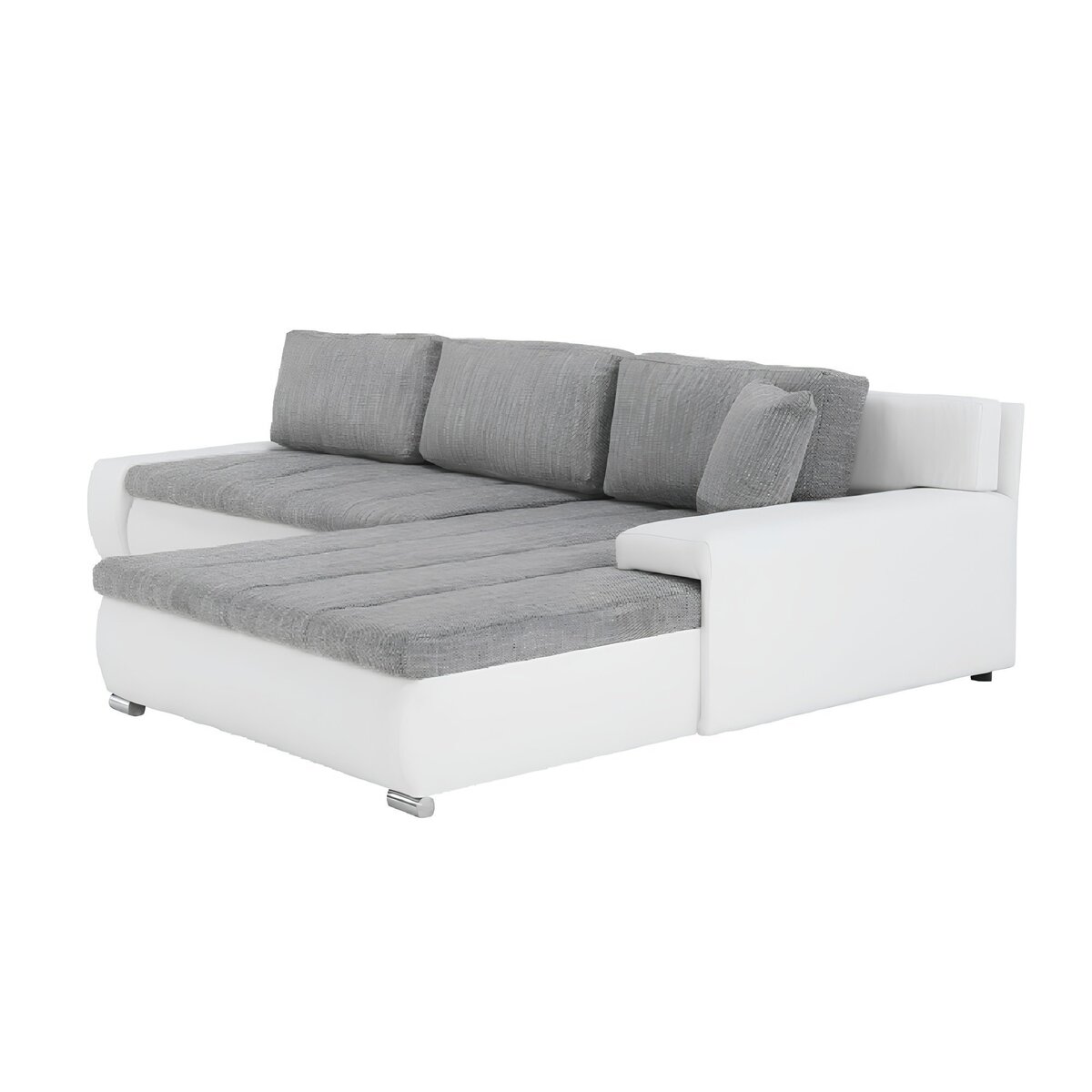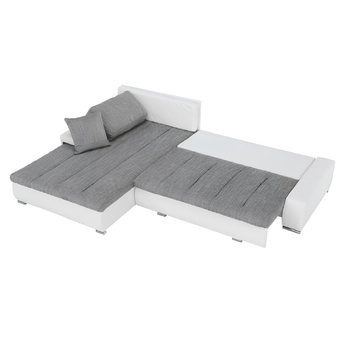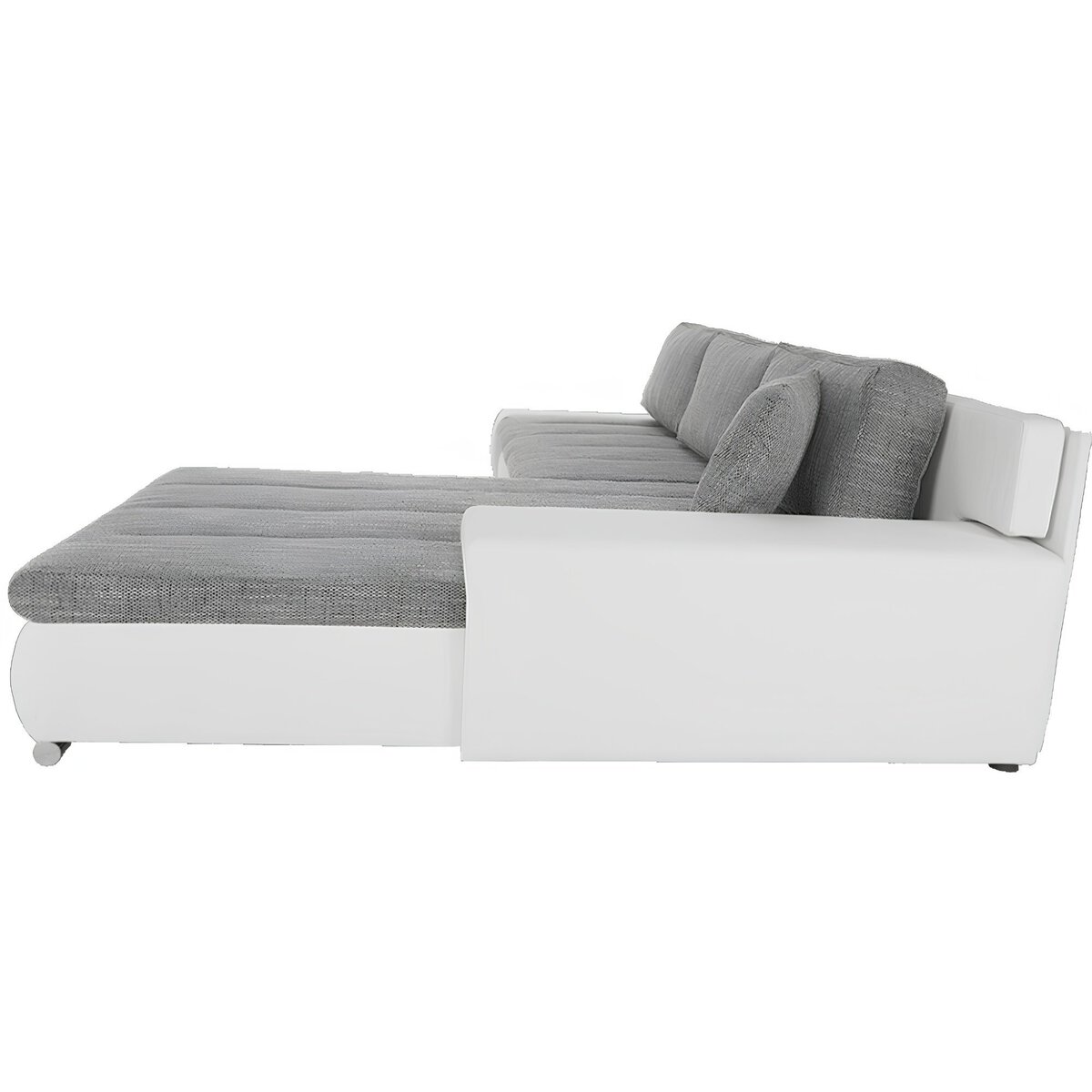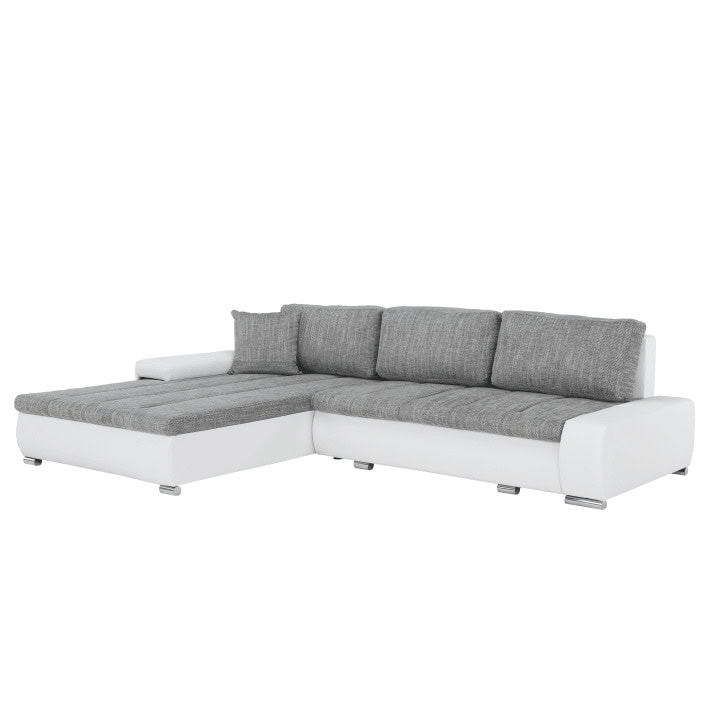 Colţar, piele ecologică/ alb/material gri melir, TONIKS