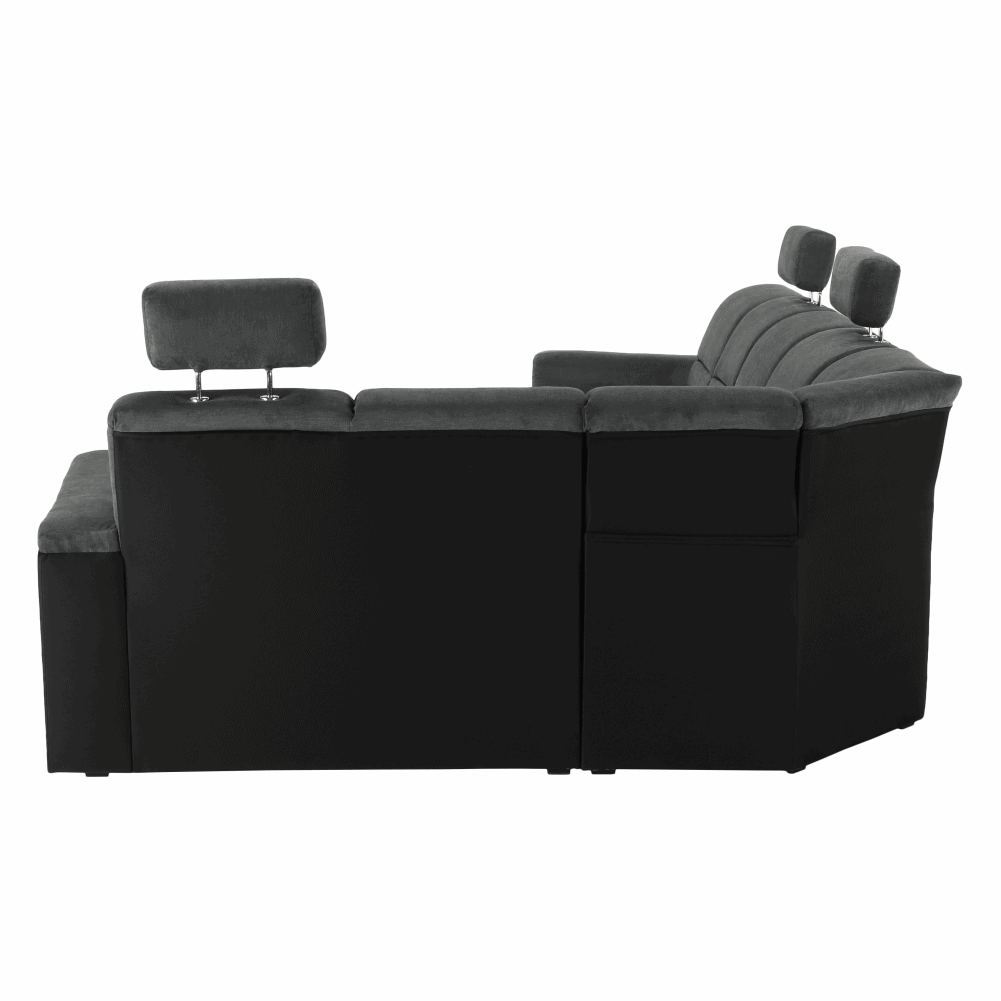Colţar, piele ecologică negru/material, model dreapta, SANTIAGO U