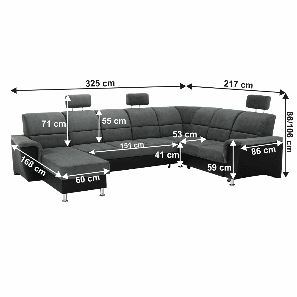 Dimensiuni (lxAxh): 325×86/106×168/217 cm, Supafaţa de dormit (lxL): 116×260 cm