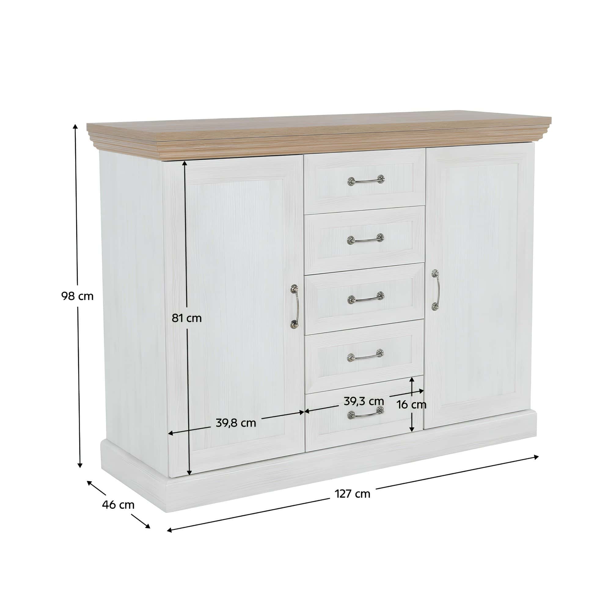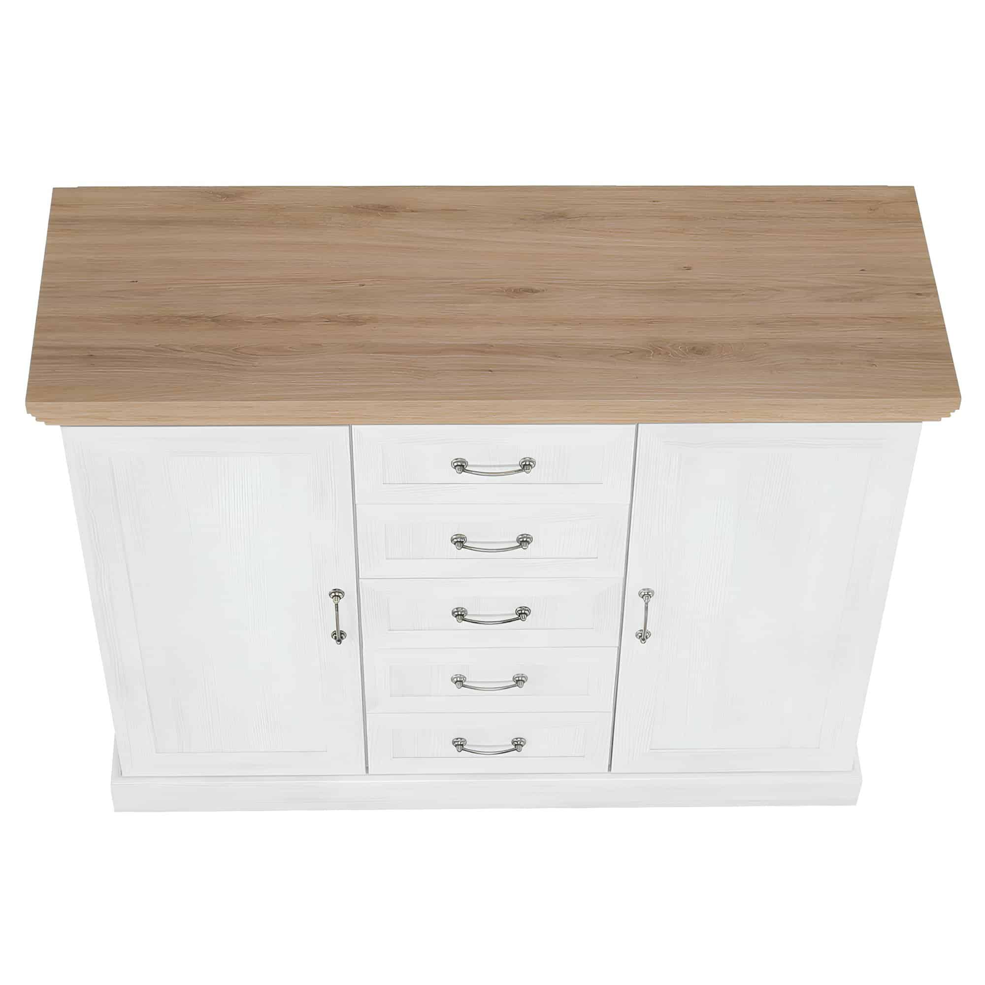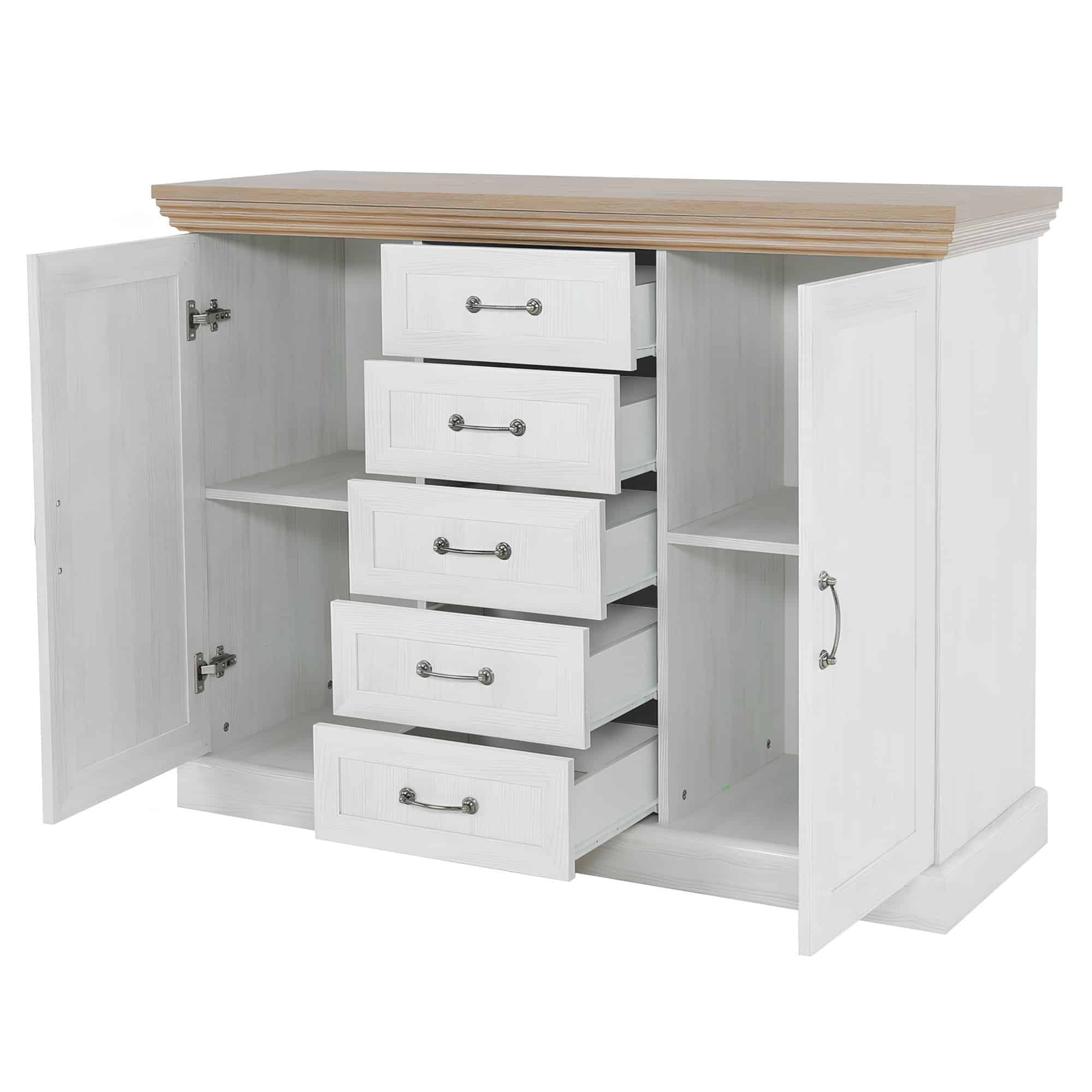 Comodă, 2 uşi cu 5 sertare, pin nordic/stejar sălbatic, ROYAL K2D